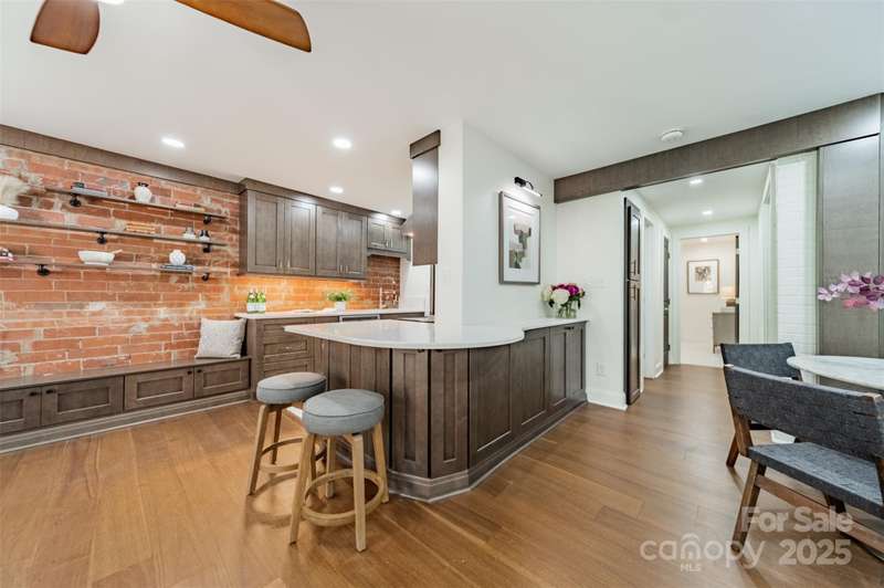 Stunning top-floor condo in the heart of Myers Park! Fully renovated and move-in ready, this end unit blends timeless character with modern comfort. Vinyl plank wood flooring flows through the open layout, accented by exposed brick that adds warmth and charm. Spacious living and dining areas offer an easy setting for both entertaining and everyday life. The screened porch overlooks mature trees and green space, creating a quiet retreat. Custom built-ins add both function and character-they provide the perfect showcase for your AV equipment, books, and treasures. The primary suite features a walk-in closet and a convenient washer/dryer connection. Located on Queens Road, this home is just minutes from hospitals, shops, restaurants, and Uptown Charlotte. The HOA is installing new landscaping as well as carpet and lighting in the common areas in 2026. No rental caps! This one-of-a-kind property offers the best of city living in one of Charlottes most desirable neighborhoods. Welcome Home!