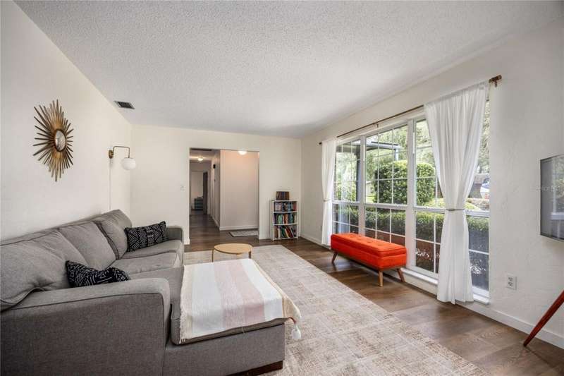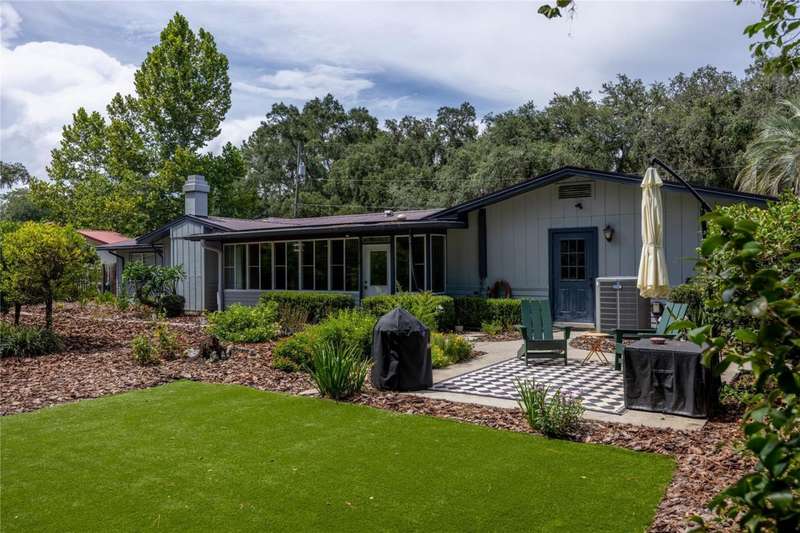 Under contract-accepting backup offers. BACK ON THE MARKET, buyer's financing fell through. Vintage charm shines in this well maintained 3 bedroom, 2 bath traditional home on a large lot in The Valley. The bright living room off the foyer with floor to ceiling windows leads into the dining room, to the large eat-in kitchen with plentiful cabinets, counter space, and pantry closet, and cozy family room with fireplace. Sliding doors from the family room and kitchen open to a spacious 4-season Florida room overlooking the patio, play area, and lush backyard with many camellias, orange trees, blueberry bushes, herb garden, and a pollinator garden. And don't miss the oversized conditioned room off the garage, with laundry area at one end and enough additional space for an exercise or yoga room, arts and craft studio, home office, music room, or your own creative ideas. From Gainesville permit site: metal roof from 2010, HVAC 2016, water heater 2012, repipe in 2013, and 200 amp electrical updates in 2021. Also windows were replaced in 2014.