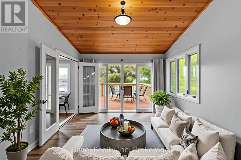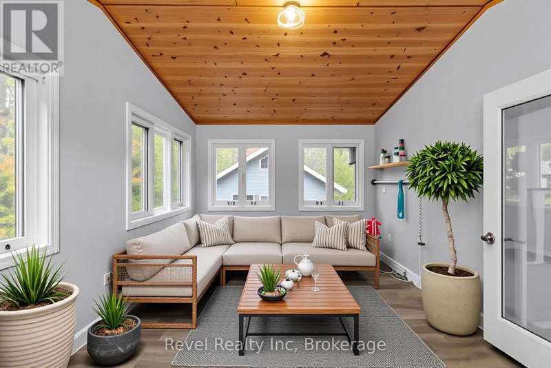 Experience picture-perfect lakefront living on beautiful Lake Manitouwabing.This bright and beautifully renovated cottage combines modern comfort with that timeless, easygoing cottage charm. The main cottage features three spacious bedrooms upstairs and a four-season Muskoka Room - the perfect spot for morning coffee with panoramic lake views that make you feel like you're right on the water.The lower level offers a fully self-contained two-bedroom in-law suite with its own walkout to the lake, providing ideal space for extended family, guests, or teens who want a place of their own.Set on a level, beautifully maintained lot, this property offers effortless access to the water - no steep climbs or rocky terrain here. Enjoy a sandy, family-friendly shoreline with shallow entry and deeper water off the dock, perfect for swimming, boating, and sunset cruises.With all-day sun, you can follow the light from breakfast on the deck to lazy afternoons on the dock, and finish the day with golden-hour dinners around the fire. A separate bunkie adds extra sleeping or play space, while a detached garage provides storage for all the essentials - paddleboards, kayaks, and lake toys alike.Located in one of the area's most sought-after lake communities, this property offers the best of cottage living with space, comfort, and a layout perfect for hosting family and friends.More than just a cottage - this is where barefoot mornings, laughter by the water, and starlit nights become a way of life. (id:7434)