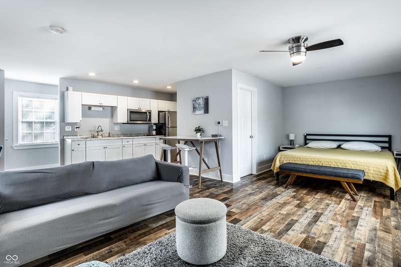 Welcome home to this Windsor Park charmer complete with a carriage house that was built in 2019! This location is a gem just steps from Amelia's and Kan Kan. As you walk up the front steps you are greeted by mature landscaping and a covered front porch. Step inside to find 3 bedrooms and 3 full baths. As you walk in the front door you'll find a custom kitchen complete with quartz countertops, stainless appliances and a center island/bar. The first floor also includes a bedroom, full bath and large living area. Two additional bedrooms and bathrooms upstairs including a gorgeous en-suite with ceramic tile floors and a walk-in shower. Additional hallway bath upstairs includes a tub. Step out the backdoor to a tranquil backyard that is perfect for relaxing on the back deck or sitting around the campfire. The two-car garage is complete with a finished studio apartment which includes a refrigerator, stove, microwave, washer and dryer. There is a separate garage space and entrance for the carriage house. This would make for a great rental property, Air BNB or in-law suite. Minutes from the heart of downtown, Bottleworks District and walkable to many hotspots like Beholder, North Mass Boulder, Provider, Brookside Park and more.