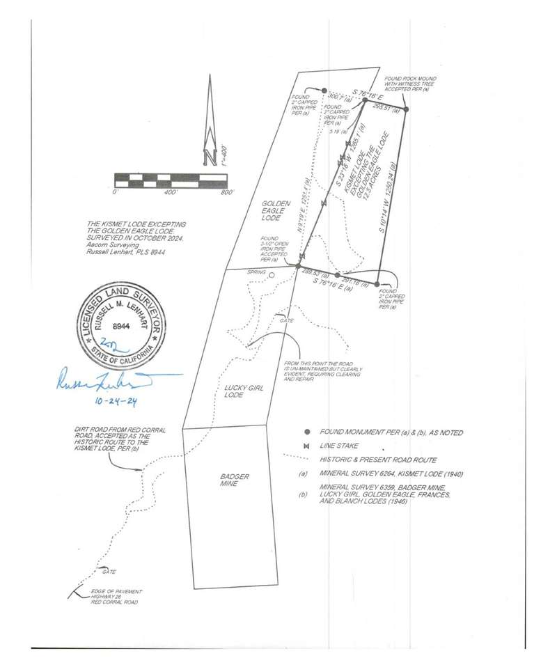 This is a unique 12.55 acre property that was recorded as the Kismet Quartz Mine Claim in 1942. This property is surrounded by one 40 acre parcel that shares the address of 25701 Red Corral and 485 acres of BLM land. Surveyor states: The southwesterly portion of the land is steep with a gulch that follows up the westerly line. The property becomes less steep toward the northerly 1/3rd, though it remains sloped throughout. There are some flats cut into the mountainside that are remnants of the mine workings. I found the corrugated roof of one collapsed small building. The westerly line runs right through it. Survey map uploaded. Preliminary Title Report uploaded in documents. Previous appraisal on file for much more that the current asking price.