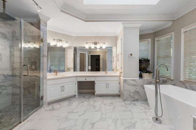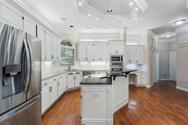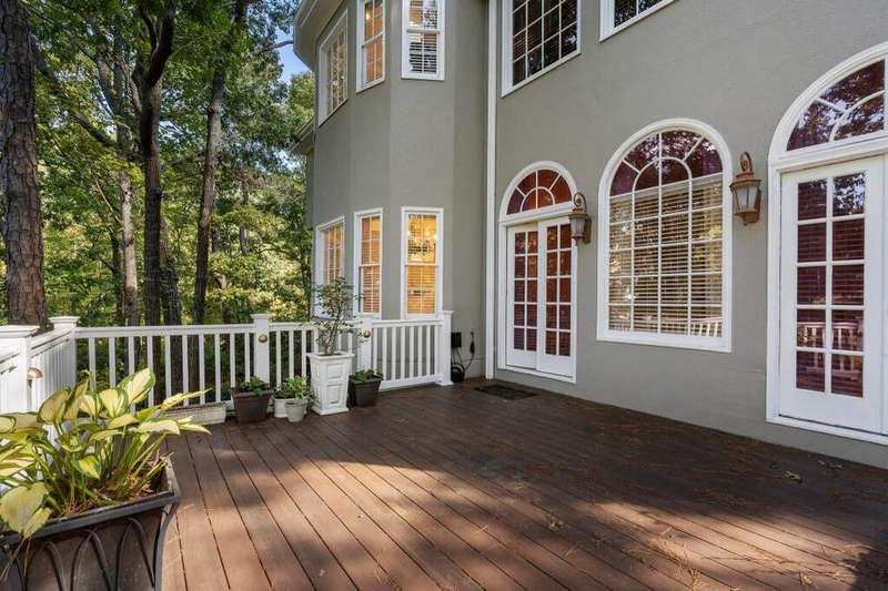 This stunning home, located at the end of a serene cul-de-sac in the Nesbit Lake Community, offers privacy and curb appeal. As you enter through the charming French doors, you're immediately drawn in by the impressive stonework in the entryway and elegant crown moldings. To your right from the foyer, the formal dining room is perfect for hosting dinner parties and also offers convenient access to the kitchen. Directly across the foyer is the formal living room, featuring a striking mantel and cozy fireplace. A private service bar bridges the living room and the den, making it an ideal setup for entertaining guests. The den exudes warmth, highlighted by an inviting fireplace and two sets of French doors that lead out to the back patio, where breathtaking views of the lake await. An informal dining area that can be used as a breakfast nook seamlessly transitions into the chef's kitchen. This kitchen features; a large island, high-end stainless steel appliances, tons of counter space, and a beverage fridge. For added convenience, the laundry room is located on the main floor. Ascending the grand staircase, you'll notice the meticulous details, including built-in display spaces lining the walls. At the top of the stairs, you'll find the oversized primary suite, with a spacious, fully remodeled bathroom and generous custom closets. The luxurious spa-like bath boasts a beautiful stone and tile shower, stone countertops, and a luxurious soaking tub. Down the hall, there's a library and office featuring a fireplace and elegant paneling, making it an ideal space for working from home. You'll also find three spacious guest bedrooms with en suite baths. The fully finished terrace level, complete with a full bath and kitchenette. This versatile space features an extra family room, a TV/game room, and another guest bedroom, alongside plenty of storage options. With direct access to the backyard, it's an ideal retreat. No detail has been overlooked in this remarkable home. Adding to the retreat-like feel, you'll find a dock perfect for fishing in the stocked lake. The community is vibrant, offering access to swimming and tennis, along with kayaking and fishing opportunities. Neighborhood amenities include a clubhouse, six tennis courts, a swimming pool, a splash park, a playground, sidewalks, pickleball courts, and two fire pits.
