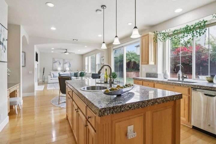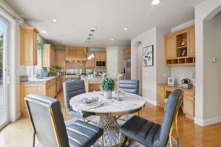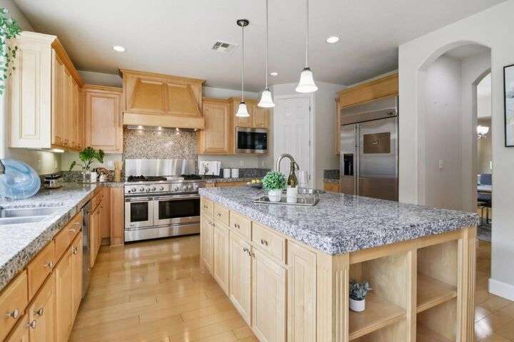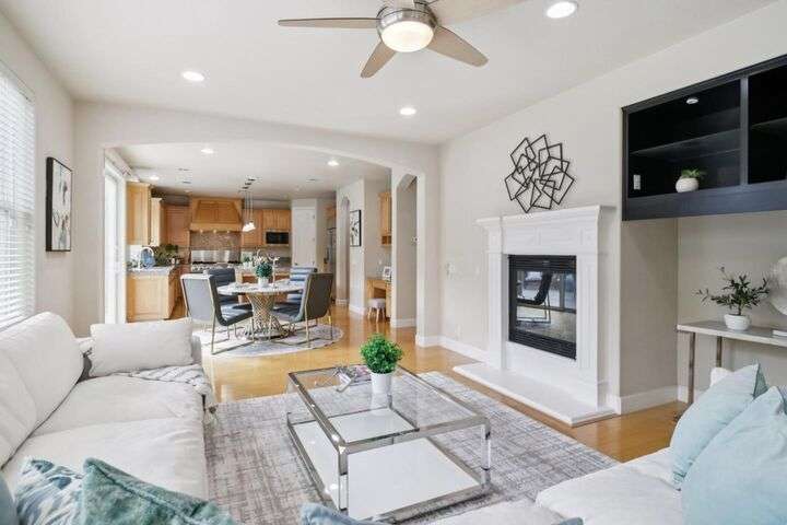 Welcome to your dream home in the heart of Evergreen! This stunning 3,628 sqft residence sits on a 7,189 sqft corner lot and offers 5 bedrooms and 3 full baths, with one of each downstairs. The gourmet kitchen is a chefs dream, featuring a GE Monogram built-in refrigerator, a 6-burner range with griddle and dual ovens, abundant counter space, an island with sink and a walk-in pantry. In addition to the living/dinging combo, a separate family room with a second cozy fireplace provides the perfect place to relax and entertain. Beautiful solid wood flooring enhances the main living areas. The primary suite includes a large private retreat, while the large loft offers flexible space for work or play. Additional highlights include dual-zone heating and cooling, upstairs laundry, wrought iron staircase, 240V EV charging hookup, 3-car garage, owned solar system with brand-new inverter, and fruit trees for year-round enjoyment. The home enjoys proximity to greenbelts, walking trails, and a family-friendly neighborhood atmosphere and a stroll to the weekly farmers market, Evergreen Village Square shops, and the nearby library. Conveniently located within walking distance to top-rated elementary, middle and high schools. Come and fall in love with this exceptional Evergreen gem!