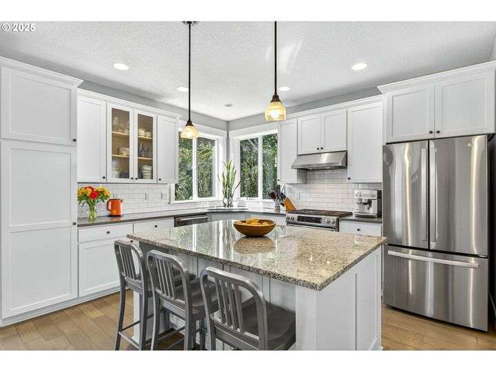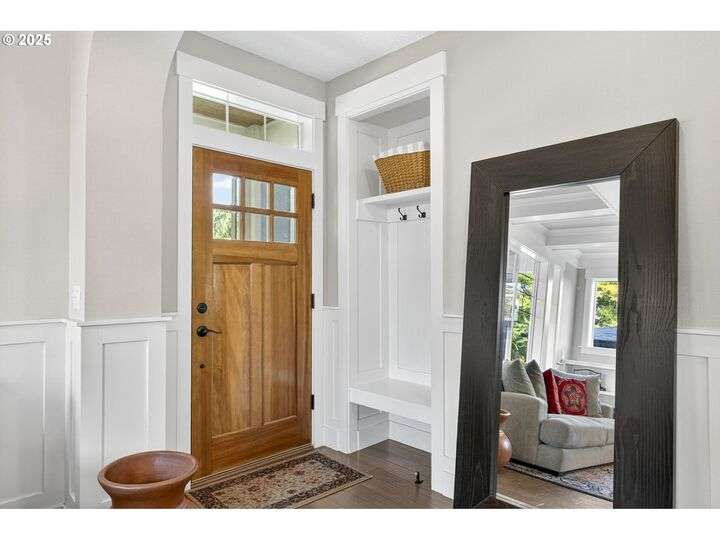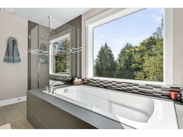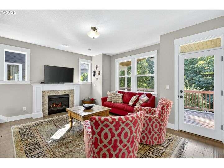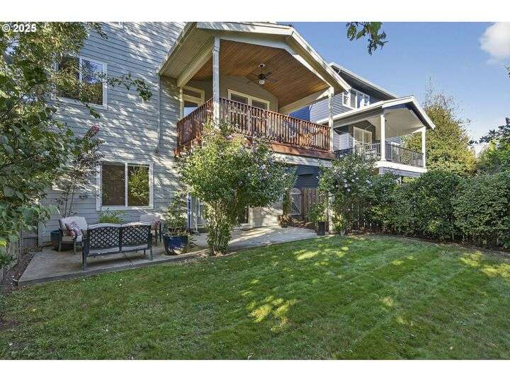 It's the rarest unicorn: elegant, modern LEED construction with an energy score of 8, on an oversized lot that feels like your own private park. The floor plan is perfect, with a luxurious primary suite plus two additional bedrooms and a second full bath upstairs; beautiful open gathering and entertaining spaces on the main level, and a separate suite on the ground floor, which is your dream home office, guest quarters, or AirBnB. Every detail of this house is gracious and dialed-in, from the softly weathered tones of the wood flooring throughout, to the exquisite blend of cool and warm tones in countertops, tile, and paint to create a beautifully relaxing harmony. Although you're just a few minutes from the Woodstock and Sellwood/Moreland business districts, and directly adjacent to biking and recreation on the Springwater Trail and at the gorgeously renovated Errol Heights Park, you'll feel as if you are in a secluded country retreat, with dappled light and vibrant greenery glowing from every window. The covered balcony deck and covered patio invite you to breathe into nature year-round. Located in coveted Woodstock/Ardenwald, this beautiful home truly is the best of both worlds, and you'll be just in time to experience the glorious blaze of fall color. [Home Energy Score = 8. HES Report at https://rpt.greenbuildingregistry.com/hes/OR10112570]