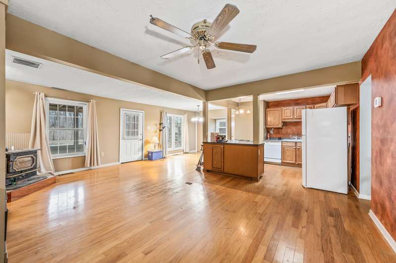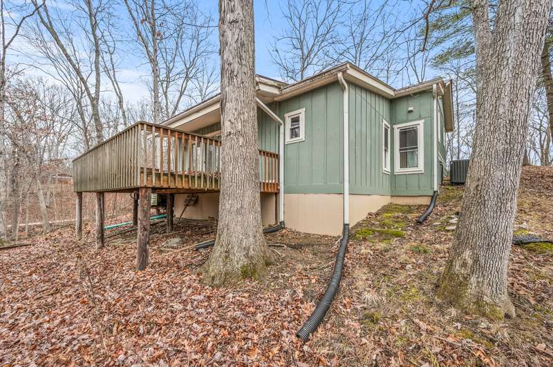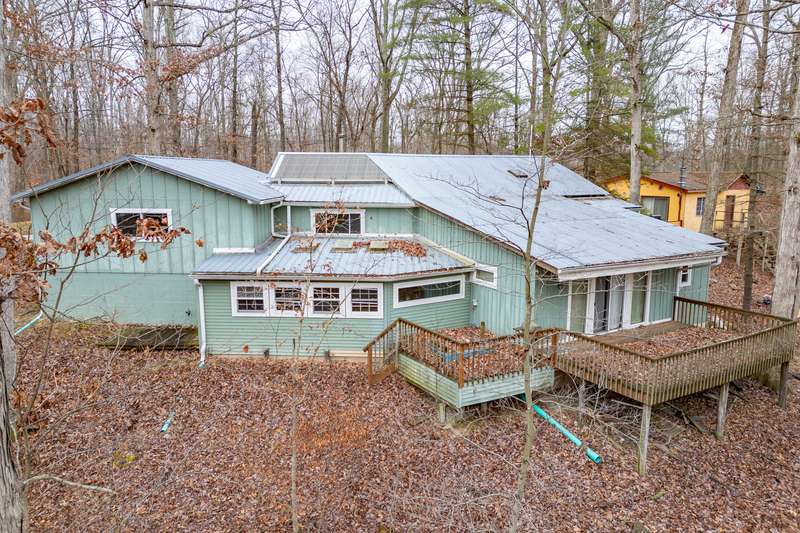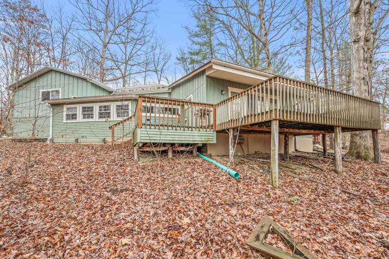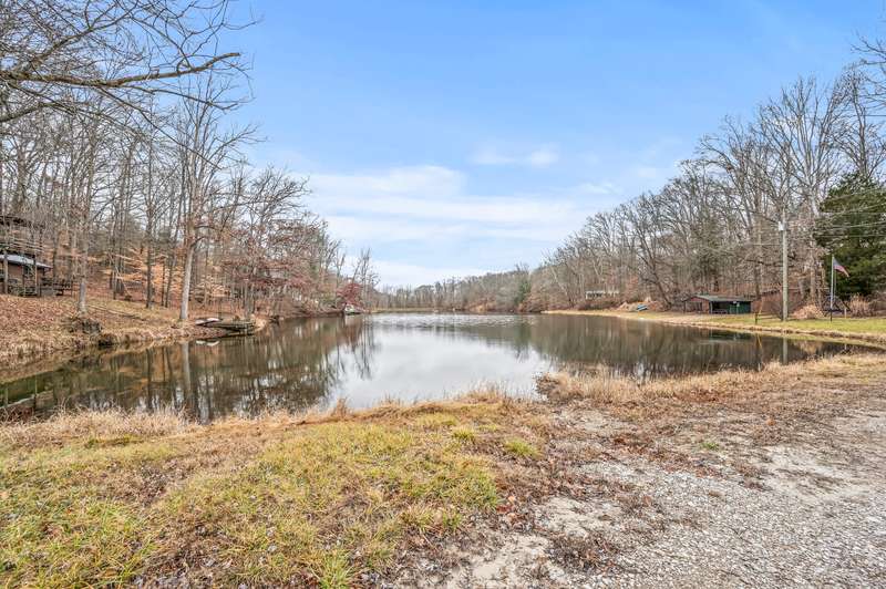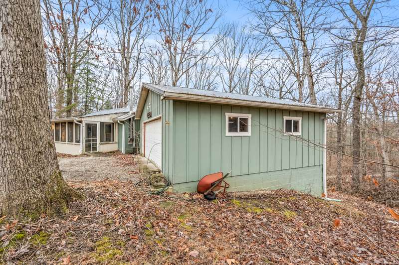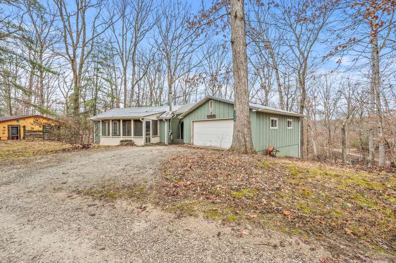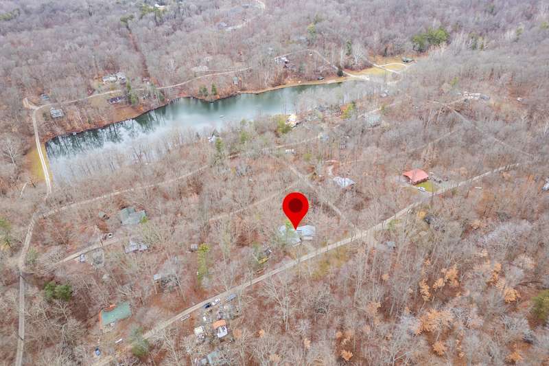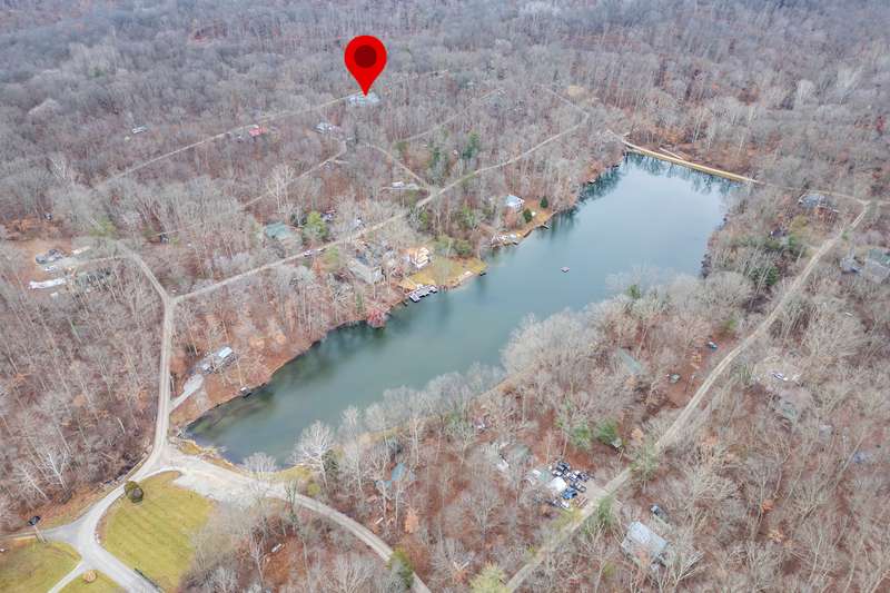 Embrace the rugged beauty & tranquility of Brown County living in this peaceful woodland retreat, perfectly positioned as your summer lake escape. Hidden away on eight lots, this property invites you to immerse yourself in nature, with a backdrop of towering trees & a private lake a short trek away. Whether you enjoy swimming, paddleboarding, fishing, or kayaking, your summers will be spent relaxing on the water. Greenbriar Lake will undergo dredging in the spring of 2025, ensuring clearer waters & an even more enjoyable lake experience. The property offers unique opportunities with three of the lots overlooking a tranquil forest. This private area is ideal for evenings by the fire pit, where you can gather under the stars or simply relax in a hammock between the sturdy trees, soaking in the peace of your surroundings. With multiple lots included, you even have the option to sell some for additional income or hold onto them for future building projects. While the home is being sold "AS- IS", the asking price reflects this, providing a great opportunity to make it your own. Step inside to a cozy open floor plan that combines the kitchen, dining, & living areas, creating an intimate and welcoming atmosphere. The lower level includes a bedroom, bathroom, and a bonus room that can be transformed into a hobby room, exercise space, or additional living area, giving you flexibility to tailor the space to your needs. The lower-level deck, which looks over a wooded hillside, provides a peaceful vantage point surrounded by nature-perfect for unwinding, birdwatching, or simply soaking in the fresh air. Back on the main level, a convenient laundry room leads to an attached two-car garage. Since 2013, the owner has made several thoughtful updates, including double-pane Andersen windows for energy efficiency, a new HVAC system, gutters with leaf guards, and a drainage system to protect the home's foundation.
