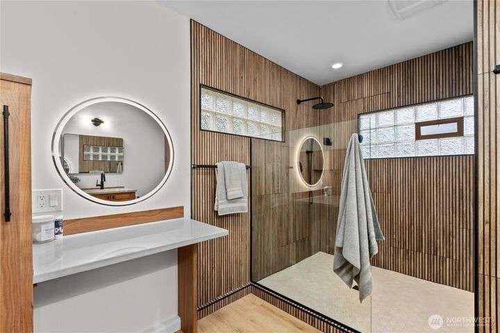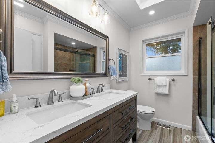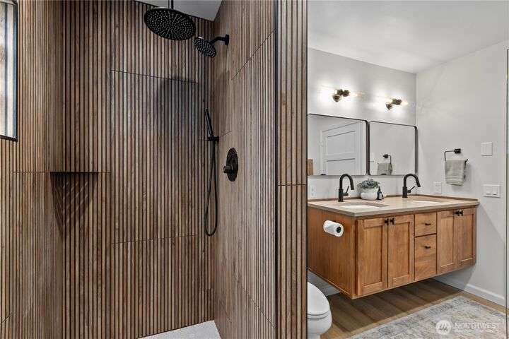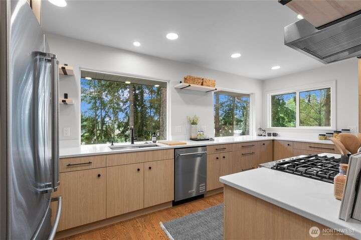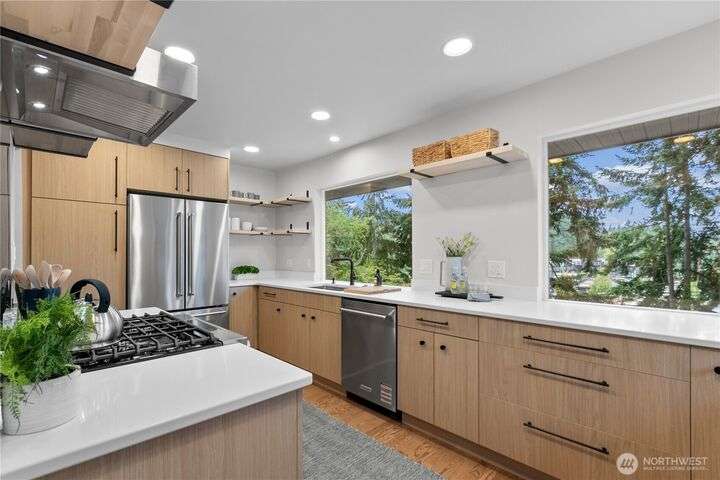 Tucked away at the end of a cul-de-sac, this fully remodeled 5BD/2.75BA Edmonds home offers 2,430 sq ft of comfort and high-end finishes throughout. Fresh paint, refinished hardwoods, new flooring, and a tiled entry welcome you in. The fully updated kitchen boasts new SS appliances, while the primary suite features a spa-like bath with a dual-head shower and a huge walk-in closet. All bathrooms have been beautifully updated with modern design and quality finishes. Two fireplaces create inviting spaces in the living room and finished daylight basement. Enjoy a tankless water heater, an oversized 2-car garage, extra parking, and a spacious yard perfect for entertaining. Ideally located near PCC, schools, and the ferry. Pre-Inspected.