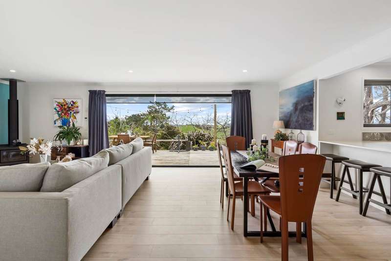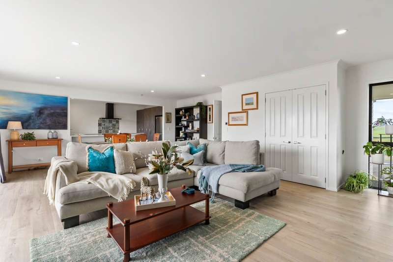 VENDORS KEEN TO RELOCATE ASAP Elevated with serene north-facing views across neighbouring farmland, this light, bright 126 square metre (approx) home with colour steel roof and double glazed joinery is located on 2513 square metres and was originally built in 2006 and extensively updated in 2019, including renovations to the main bedroom and kitchen, along with a new garage. Our vendors are keen to relocate closer to family as soon as possible and are ready to meet the market. A concrete driveway leads to the home as well as a stand-alone lock-up garage with power and lighting, currently used as an office or workshop. There is also generous extra parking outside, along with a separate white cabin. The foyer offers entry to a sunlit bedroom with adjoining walk-in wardrobe and bathroom with shower and toilet. Designed as the master bedroom suite, this studio is currently attracting a handy income of $350 per week but is equally ready to return to its original designation if required. Foyer entry is also into stylish open plan family living with timber-look laminate flooring, heat pump and wood fire and a bi-fold sliding door window wall opening to the large scenic timber deck and its undulating vistas to the distant hills. Modern and well equipped, the kitchen features ample cabinetry, engineered stone benchtops, accent stove with range hood, dishwasher and breakfast bar. The home’s hot water system is solar powered. Off a small hallway, the family bathroom sits between two bedrooms, both with built-in robes. The larger of these bedrooms opens onto a deck and steps down to the adjoining garage, which also houses the laundry and features lockable sliding doors to an insulated, spacious multi-purpose room or storage area. Outdoors a small paddock is home to contented chickens and ducks, there’s a raised vegetable garden and garden shed, several water tanks and a lawn area. This is an easy care happy home with space to potter, scenery to enjoy and income to collect if you so desire. • Elevated location with serene north-facing rural views • Established trees populated by beautiful native birdlife • Concrete driveway to home & garage + extra parking • Foyer entry to both master bedroom suite & family living • Master suite/studio currently rented for $350 per week • Stylish sunlit open plan lounge & dining. Heat pump & fire • Window wall + bi-fold doors to expansive timber deck • Peaceful picturesque al fresco recreation & entertaining • Modern quality equipped kitchen. Timber laminate floors • 2 carpeted bedrooms with built-in wardrobes. 1 + deck • Family bathroom. Solar hot water system • Lock-up garage + Laundry, power/lighting & storage area • Separate multi-purpose cabin or possible sleep-out • Raised vegie garden. Garden shed. Kid’s lawn play area • Paddock housing chickens & ducks. 2 x water tanks • Close proximity to Bombay School & Ararimu School • 15.3kms to Pukekohe Township and Pukekohe High School • 7.7km to north and south motorway access via Bombay • 53.8kms mins to Auckland City. 42.8kms mins to Auckland airport