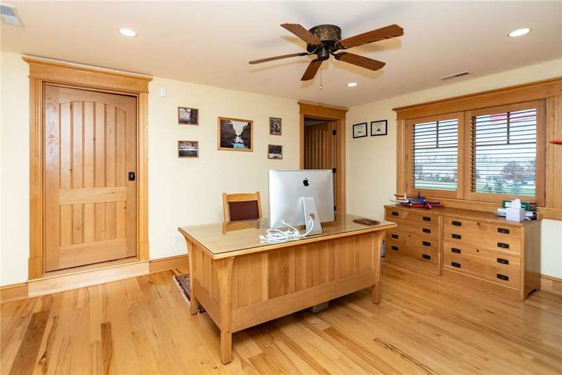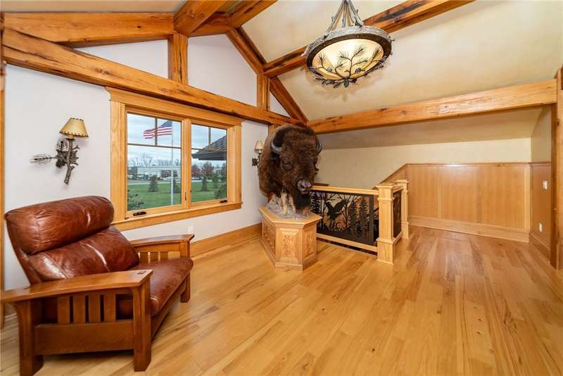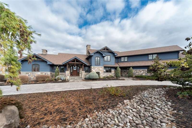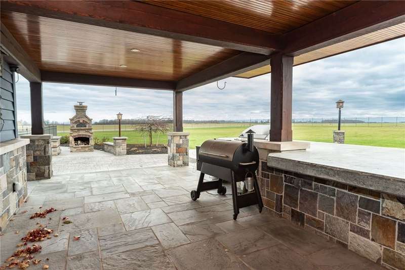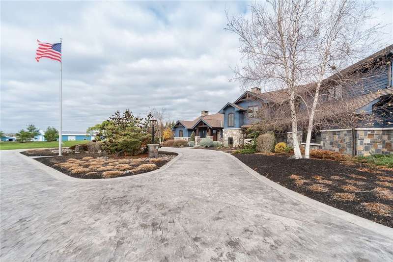 Custom built home overlooking the Genesee County Airport has 3/4 bedrooms, four full bathrooms and two half bathrooms. The gourmet kitchen has custom burled chestnut and walnut cabinets, hickory floors and black walnut on the island. Off the kitchen is a walk-in pantry and entrance to the four-car garage with heated floors. The driveway is also heated for 5' from the house. (All floors in the house are heated.) The kitchen is open to the dining room and living room with a gas fireplace and French doors leading to the patio. There is a room for entertaining guests that has a bar, gas fireplace, black walnut floors and doors leading to the patio and in ground pool. The primary suite is on the first floor with a private bathroom featuring double vanities, a walk-in tiled shower and a jetted tub. The laundry room is also on the first floor. There are 2/3 bedrooms on the second floor and two full bathrooms. There is a loft overlooking the living room and a second-floor balcony to enjoy watching the planes fly in and out. There is an outdoor kitchen on the patio with a natural gas grill and wood pizza oven. There is an inground pool and fire pit in the back yard.
