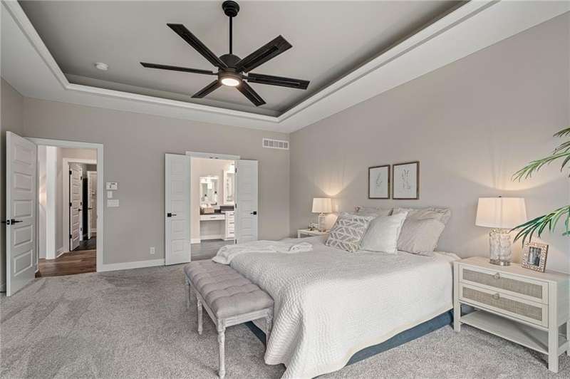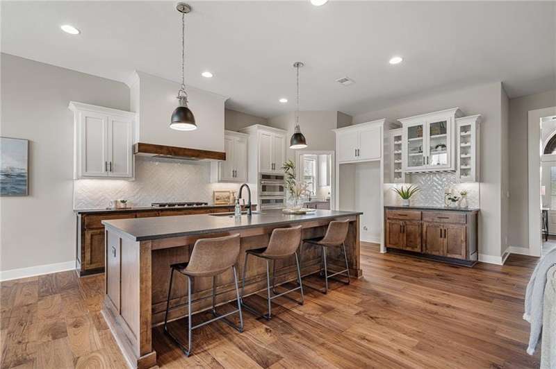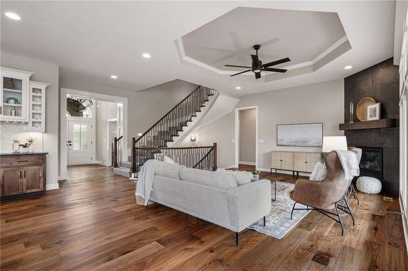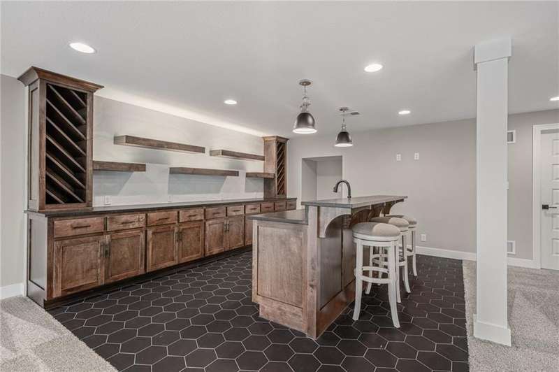 New Price Exceptional Opportunity Discover the perfect balance of luxury, comfort, and convenience in this nearly new James Engle Custom Berkley II 1.5-Story, tucked away on a private cul-de-sac on a lush, treed lot in the sought-after Timber Rock community.Step inside to a light-filled main level where the chefs kitchen impresses with a custom range hood, upgraded counters, stainless steel appliances, prep kitchen, and a walk-in butlers pantry. The open layout flows seamlessly into the great room, creating the ideal setting for everyday living and entertaining. The primary suite is a true retreat with a spa-like bath, custom walk-in closet with built-ins, and private access to the laundry.Upstairs, find three spacious bedroomseach with its own en suite bath and walk-in closetalong with a bright loft for work, play, or relaxation. The finished lower level is designed for fun, featuring a custom bar, theater room, and full bath. Step outside to enjoy peaceful backyard views from the oversized covered deck.Living in Timber Rock means access to resort-style amenities including a pool, clubhouse, playground, and scenic walking trailsall within the award-winning Olathe school district (Manchester Park Elementary, Prairie Trail Middle, and Olathe Northwest High).Dont miss this incredible home, now offered at an unbeatable new price!