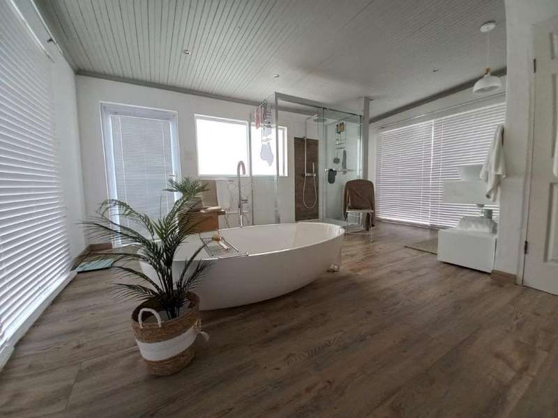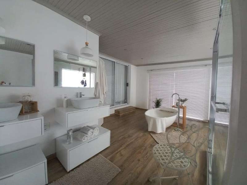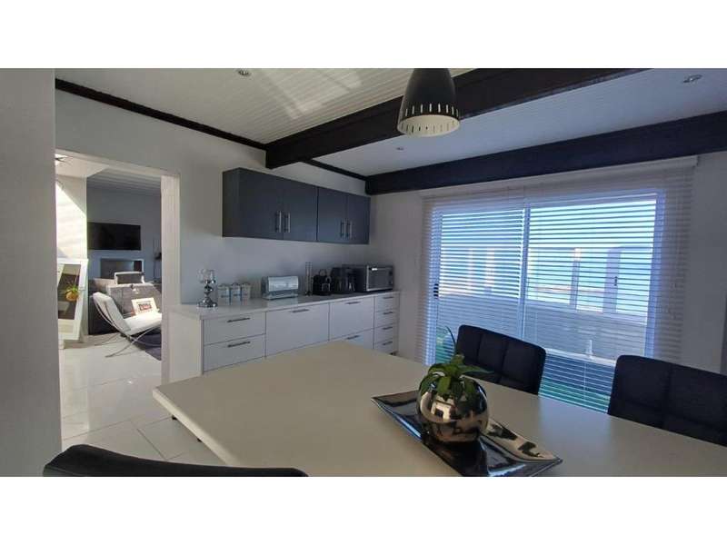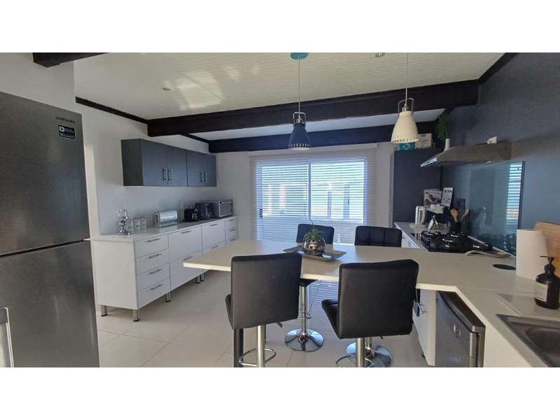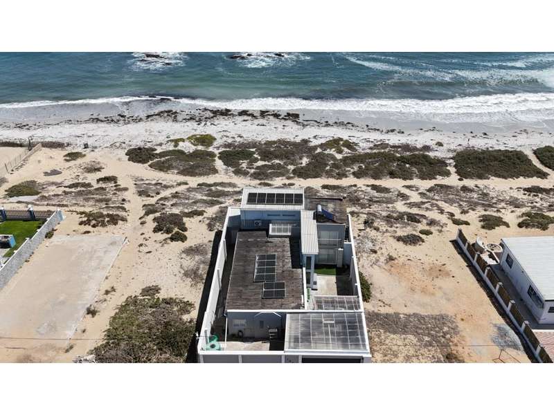 Beachfront Bliss Awaits Imagine waking up to breathtaking ocean sunrises and falling asleep to the soothing sounds of the waves. This exceptional beachfront property satisfies every desire for a serene and active lifestyle. Unparalleled Views - 180-degree ocean views from every angle Luxurious Living Spaces Upstairs: - Main bedroom with built-in wardrobes and laminated flooring - En-suite bathroom with modern finishes Downstairs: - 3 Spacious bedrooms - 3rd bedroom with en-suite bathroom - Guest bathroom Open-Plan Living - Dining room with stunning sea views - Lounge with built-in fireplace and full sea views - Modern kitchen with: - Ample cupboard space - Built-in gas stove - Extractor van Outdoor Oasis - Front patio with BBQ area and uninterrupted sea views - Perfect for alfresco dining and relaxation Smart and Secure Features - Inverter and solar panels for sustainable energy - Upstairs air-conditioning for comfort - Security system for peace of mind - High fences for total privacy Experience a life of tranquility and luxury in this meticulously maintained beachfront haven. Where every day feels like a vacation.