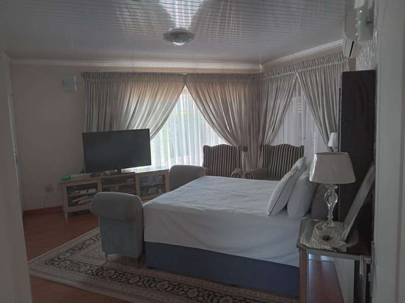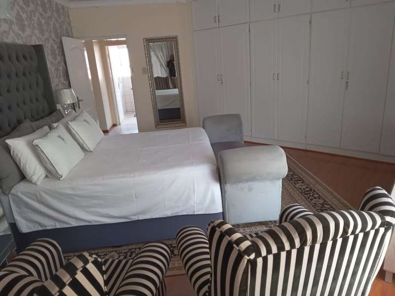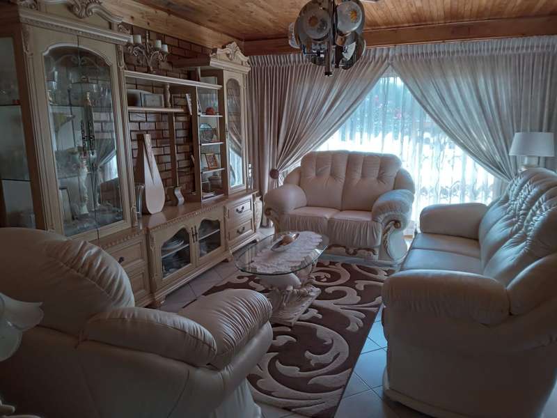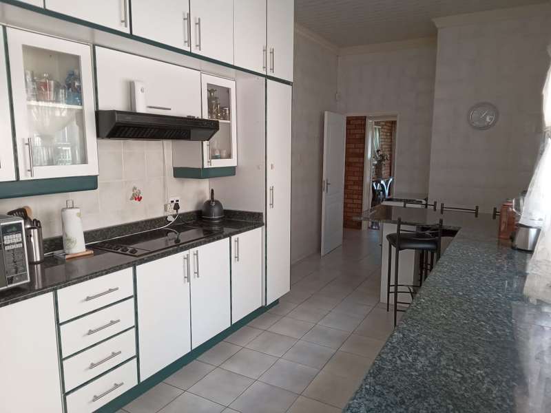 Spacious and well-maintained 5-bedroom family home boasting a main bedroom with en-suite, two additional bathrooms, and a guest toilet. The home features multiple living areas including a lounge, dining room, and TV room — perfect for comfortable family living and entertaining. Outside, you'll find two back rooms with a bathroom, ideal for extended family or rental use. The property also offers two garages, a carport, a sparkling swimming pool, a borehole, and a delimer system for water treatment. Added extras include a solar power system and a durable fetch roof, making this home both eco-friendly and cost-efficient.