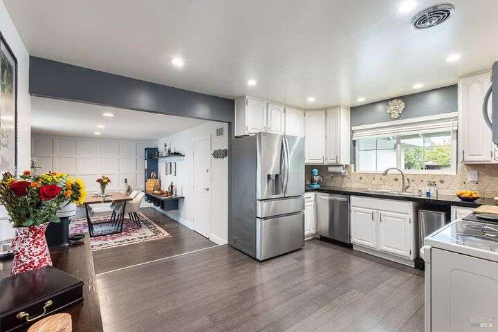 Updated home in desirable North Napa's Bel Aire neighborhood! Located in the middle of it all, this home boasts a larger lot with a swimming pool and basketball court / RV parking (room for an ADU) and two covered patios in the spacious back yard. Updated kitchen, bathrooms, flooring, and more make this light-filled home sparkle. Less than a half mile to Trader Joes, Whole Foods, Target, dining, and more, with easy access to Highway 29 to Downtown Napa and Yountville.