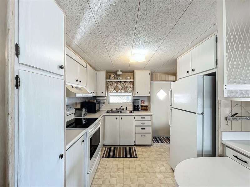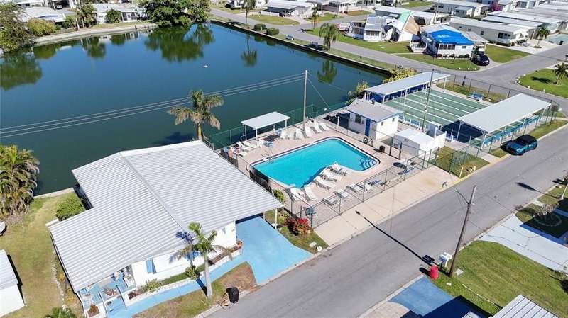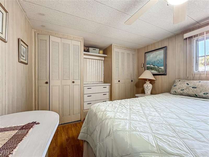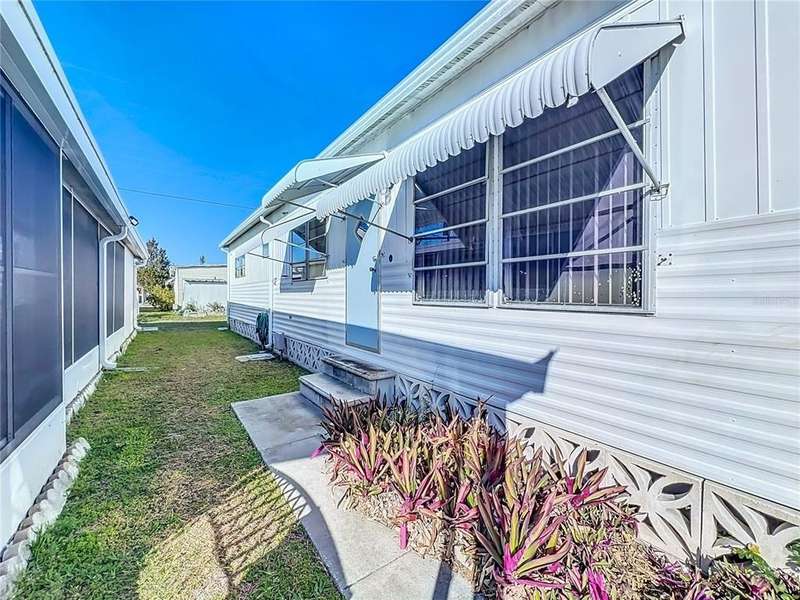 This LIGHT and BRIGHT, TASTEFULLY TURNKEY FURNISHED home features two bedrooms and 1.5 baths, with WOOD LAMINATE flooring throughout (except in the kitchen and bathrooms). It has no hurricane damage, except for a ridge vent replacement. The spacious primary bedroom can easily accommodate a king-sized bed and offers plenty of closet and storage space. The convenience of a half bath in the primary bedroom, with updated flooring and a new toilet installed in 2022, adds to the appeal. Awnings provide additional protection during storms, and the microwave is new as of 2024. With ample storage, including two sheds, this home also offers low dues, covering a heated community pool, pickleball, tennis courts, shuffleboard, and both water and sewer. Located in Fair Lane Acres, an active 55+ community in the heart of Bradenton, it's just minutes from SRQ airport, local shops, restaurants, and the beautiful Bradenton beaches-perfect for a relaxed, carefree lifestyle!
