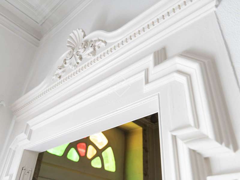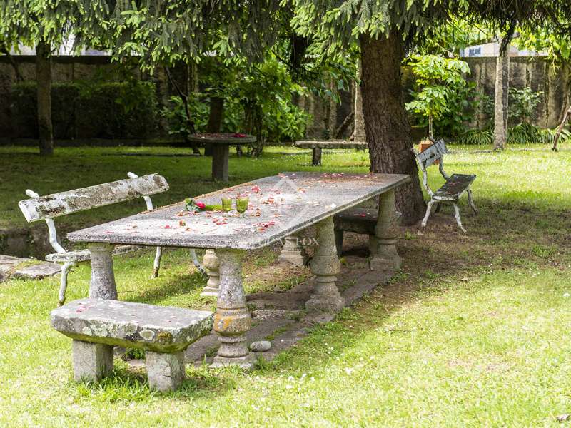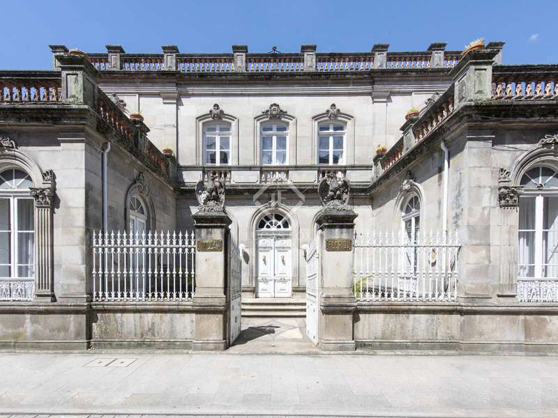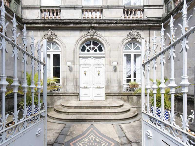 In the small town of O Porirño, Pontevedra, we find this unique property dating back to early 1901, finished in great detail by the Galician architect Jenaro de la Fuente Dominguez. Situated in the centre of town, it has many great possibilities of converting the property into a large residential property or a commercial use property, for example, a small boutique hostel. It is located in the centre of town, with the Camino of Santiago passing in front of the property. Villa Florida has a U-shaped layout on the ground floor and a rectangular first floor, with two protruding blocks on both sides of the ground floor. A gate between the 2 protruding blocks protects a small courtyard from the street. This is the main entrance to this stately building. The greatest decoration can be seen on this main façade. The windows have segmental and semicircular arches, as does the door. They are moulded arches with a highly ornamented keystone in the centre. There are 2 windows in the two projecting pavilions with semicircular arches and fluted pilars with composite capitals on top. The building is ornate, with floral decoration, to give the structure more extraordinary elegance, the upper part of the building is crowned with a balustrade separated by sections that mark small pilasters placed on top of the façade. The entire mansion is built with excellent stonework. On the rear side of the building, there is an extensive green area in which there was an English and a French garden in the golden days of this Villa Florida, of which there are still signs. It offers large trees, plants, and lovely exterior spaces that can be enjoyed today. The garden can be accessed from the street through a classical gateway with two fluted columns with Corinthian capitals attached to the wall flanking a semicircular arch supporting an entablature with an ornate frieze. A coat of arms of the Tavares house is displayed there. One inside Villa, Florida, the mansion offers historical artistry. There are 2 levels of space, high ceilings measuring almost 5 metres high and historic mosaic tile flooring, stonework and carpentry. We have the living area on the main floor, with a grand dining room leading to the back garden, the sitting lounge, the living room, a large kitchen, a study/library, and the grand stairway to the first floor. On the first floor, we find the sleeping area. There are 5 bedrooms, 2 shared bathrooms, a dressing and ironing room and a large exterior terrace. The property needs updating. Overall, the structure of the property is in good condition. This property can be attractive for anyone looking to take on a project to restore this property to use it as a primary residence or a small boutique hotel. The location is a suburb, and the history behind this exquisite mansion always has value.