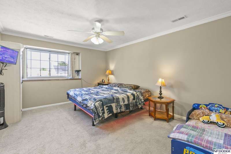 Gorgeous Bellevue 2 Story w/a TRUE 4 bedroom! Completely Updated. Open & Airy Family rm w/ tiled gas fp & lvp flr leads to beautiful kitchen w/granite counters, tiled bkspl, lvp, SS appl & pantry. Eat in dining area opens to newly stained deck. Newly remodeled guest bath & main flr laundry. Large primary bedroom w/walk in closet & full private bath. 3 sizable secondary bedrooms share a second full bath. Fully finished bsmt w/huge family room & storage area w/built in shelves. Charming, private, fully fenced bkyd w/ custom shed & playset. Brand New Roof (8/2025). New HVAC/2020. Water Heater/2024. New paint in & out in 2025. Radon Mitigation system. Extra parking pad. Rare find in this price range. Move In Ready. Truly a Must See !!