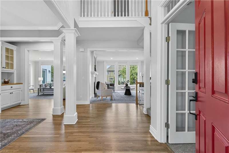 Welcome to this beautifully updated 2-story home in The Wilderness, tucked away on a private cul-de-sac lot in the award-winning Blue Valley School District. Offering 4 bedrooms, 4.5 baths, and over 4,600 sq ft, this home is filled with thoughtful updates and versatile living spaces. The main level boasts newly refinished hardwood floors, tall ceilings, formal dining, office with French doors, and a bright living room with a wall of windows and see-through fireplace connecting to the hearth room. The chef's kitchen features new quartz countertops, painted cabinets with updated hardware, walk-in pantry, stainless steel appliances including new oven, microwave, and gas range, plus a breakfast nook with access to the deck and fenced backyard with fire pit. Upstairs, the spacious primary suite offers vaulted ceilings, a wraparound walk-in closet with built-ins, and a spa-like bath with dual vanities, whirlpool tub, and walk-in shower. Three additional bedrooms include generous closets, en-suite or Jack & Jill baths, and vaulted ceilings. The finished walk-out lower level is perfect for entertaining with a large rec room, full bath, flex/theater room with built-in speakers, and stubbed for a kitchenette or wet bar. Enjoy community amenities including a clubhouse, pool, play area, and trails leading to Wilderness Lake - all in a prime Overland Park location close to shopping, dining, and highway access.