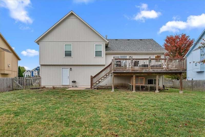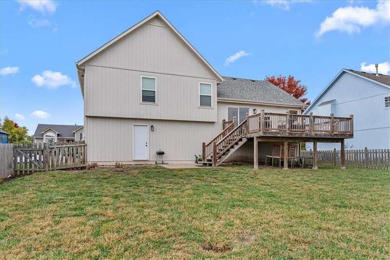 Welcome to 521 E Acorn St in Willow Springs a beautifully maintained, move-in ready home in the heart of Gardner! This inviting property combines modern updates, energy-efficient features, and a functional open layout designed for todays lifestyle.Step inside to find luxury vinyl plank flooring, updated lighting and ceiling fans, and a bright, open-concept main level. The kitchen impresses with stainless steel appliances, granite countertops, modern painted cabinetry, and plenty of workspace and storage. Enjoy morning coffee or evening gatherings on the deck off the kitchen, complete with steps leading to a large, level backyardideal for pets, play, or future landscaping.The spacious primary suite offers a relaxing retreat with a walk-in closet, double vanity, and a modern, tiled shower with sleek finishes. Two additional bedrooms provide great space for family, guests, or a home office.The unfinished lower level features daylight windows, and is insulated and stubbed for a future bathroom, offering the opportunity to add value and expand living space with a family room, 4th bedroom, or recreation area.Additional highlights include low-maintenance exterior siding, energy-efficient windows, updated mechanicals, and neutral paint throughout. Conveniently located near schools, parks, and shopping, this home delivers the perfect balance of style, comfort, and potential for future equity growth.