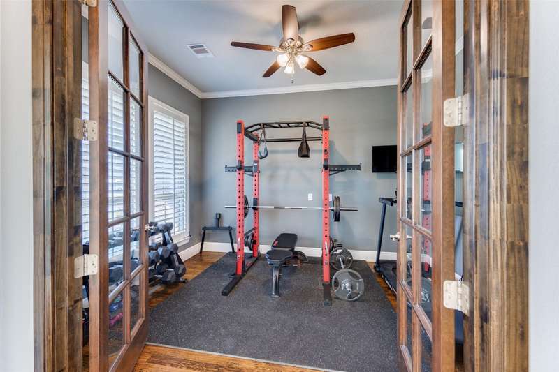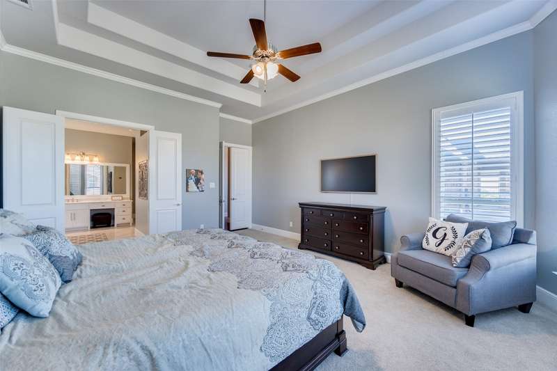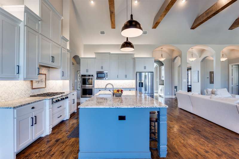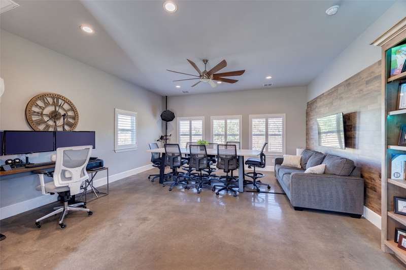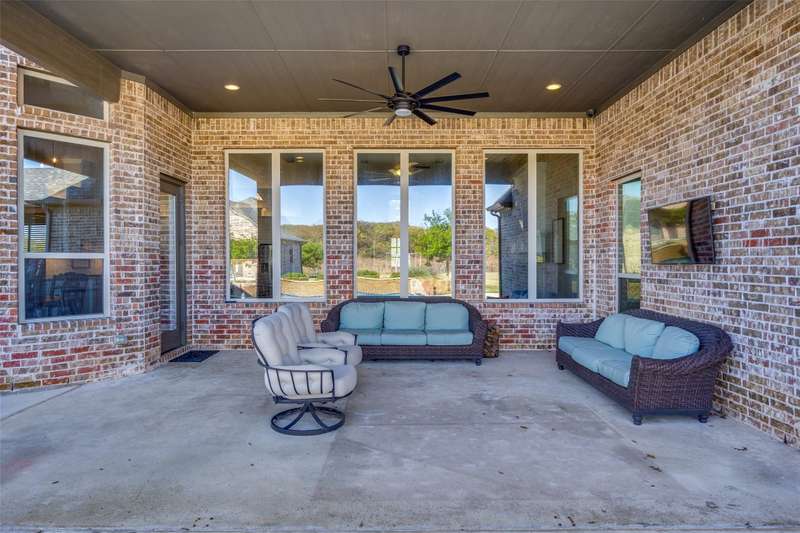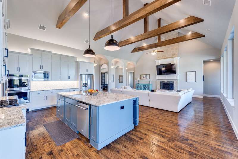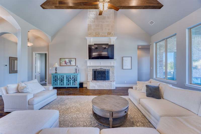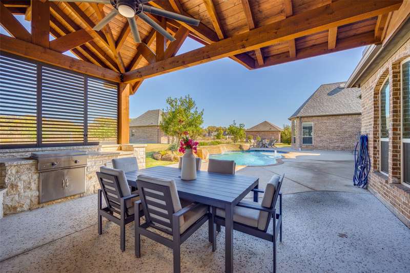This exceptional one-story home offers 4,253 sq. ft. of elegant living space plus a 600 sq. ft. detached suitebringing the total livable area to 4,853 sq. ft. The private suite includes a full bath and kitchenette, making it ideal for guests, in-laws, or a home office.Inside, rich hand-scraped hardwood floors, exposed ceiling beams, plantation shutters, and a custom wood accent wall add warmth and character throughout. The gourmet kitchen is a true centerpiece, featuring an oversized island, double ovens, abundant cabinetry, and seamless flow into the spacious living and dining areas with large windows overlooking the backyard oasis.A dedicated study, formal dining room, and versatile game or media room provide flexible spaces for work and play. The secluded primary suite offers a relaxing retreat, while secondary bedrooms include a Jack-and-Jill bath and a private ensuite.Step outside to enjoy a backyard designed for Texas livingcomplete with a covered patio, full outdoor kitchen, dining area, resort-style pool with waterfall feature, and cozy fire pit. Additional highlights include a 3-car garage with epoxy floors and an EV charging station.Located in desirable Parker, TX, this home perfectly blends country serenity with convenient access to city amenities.