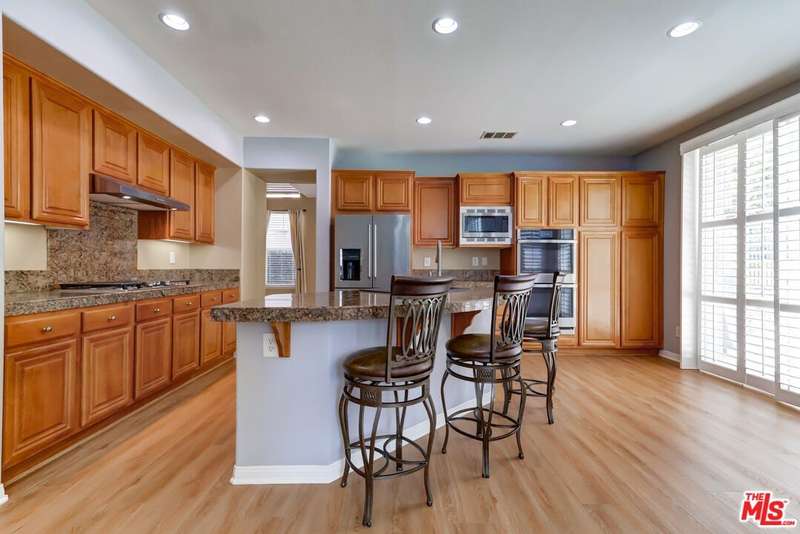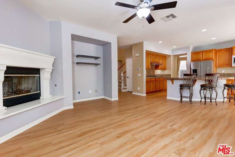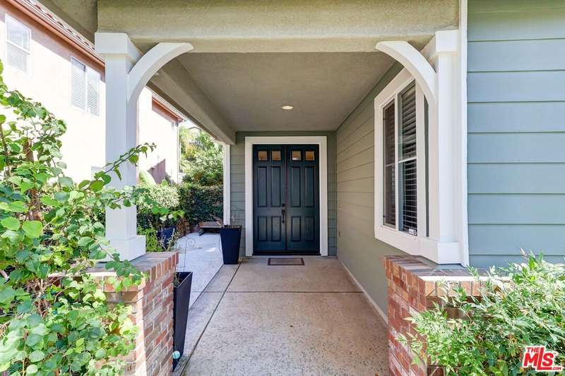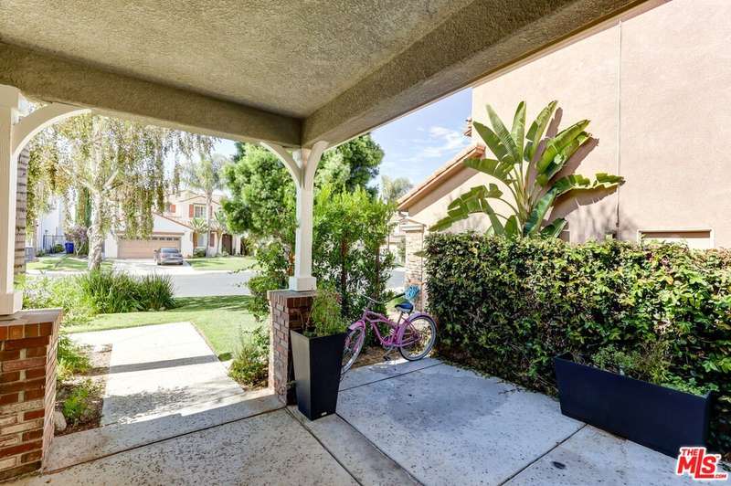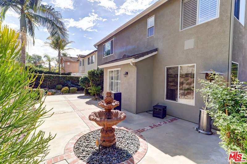 Beautiful single-family home in the gated community of Alterra at Serenata in Moorpark! Constructed in 2001, this 4 bedroom, 3 bath home is over 2500 square feet of living space. 25ft, two-story high ceilings in the living room fill the room with light and a formal dining room overlooks the yard. Fresh paint inside and out. The kitchen includes granite counters, engineered wood floors, double oven, new stainless steel appliances, large center island w/bar seating, lots of cabinets and storage as well as a breakfast area with an adjacent family room w/fireplace & new flooring throughout. There is a full bath and bedroom downstairs. Upstairs, the primary suite boasts views of the yard, and a luxurious bath with jetted tub, dual sinks, tile floors, extra-large shower & two walk-in closets. Two additional bedrooms with a hall bathroom finishes out the sleeping rooms upstairs plus a laundry room with sink and cabinet storage is conveniently located on the second floor. Private rear yard with open patio, fountain, lush landscaping, herb garden and mature fruit trees (mango, pomegranate, Asian pear, orange, tangerine, peach, guava, avocado, lemon and lime). Saltless water conditioner system. Hard wired for ADT alarm. 3-car direct access garage with epoxy flooring and custom storage cabinets. The community is next to Miller Park, near award winning schools (across the street from Mesa Verde Middle School), hiking trails and walking distance to restaurants, shopping and transportation (an MCT bus stop is conveniently located right outside the gate).