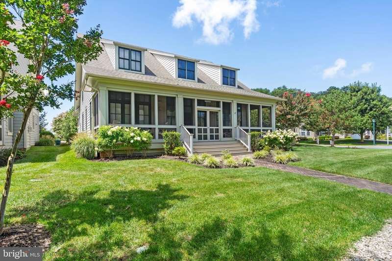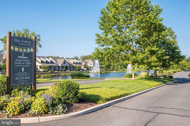 Beautiful 3 BD/3.5 BA Main Street Homes Lake Cottage, loaded w/ upgrades including premium Main Street Home trims enjoys POND & FOUNTAIN VIEWS from the EXPANSIVE SCREENED PORCH AT REAR OF THIS HOME. Paver driveway & front walk lead to a welcoming front porch. (Pavers will be power-washed, re-sanded & sealed this summer with 3 Year Service Warranty.) Storm door & front door with side lights (& plantation shutters) open into the Foyer, brightly lit by two recessed lamps, and accented with wainscoting and a plantation-shutter-like HVAC-return cover. Foyer flows into the Kitchen, Breakfast Room & Great Room across gleaming wood floors. Kitchen sink window features plantation shutters. Kitchen combines upgraded granite counters & appliances with premium cabinetry (two sets of glass-fronted cabinets display wares of visual interest). Kitchen Island facilitates food prep & socializing beneath 9 bright recessed lamps. Adjacent Breakfast/Dining Area has room for a table serving up to 8 guests under a custom lamp. Great Room floods with light, and no wonder: all its windows, and the door to rear screened porch, include transoms. Plantation shutters face Indigo Bunting Court & custom blinds face the rear screened porch. Tall dormers set high in the Great Room's cathedral ceiling admit still more light and a constant play of skyscapes. The Great Room also features a natural gas Fireplace with heatilator and a granite & wood hearth and one of the home's two wall screen TVs & 7 ceiling fans. Primary Suite features wood floors, a cathedral ceiling, ceiling fan, dormer with shade & plantation shutters throughout. AMAZING CUSTOM CLOSETS. In the Primary Bath, there's a soaking tub, a large, frameless walk-in shower & twin vanities. Upstairs you'll find a loft and two more Ensuite BDs, one of which has a ""Junior BD""Â? space behind a barn door. The rear Screened Porch views a pond, fountain and trees. There's a first floor Laundry. Newly painted 2-car garage with soon-to-be epoxied concrete deck. A NEW ROOF will be installed as well. New smoke/CO detectors were installed throughout the house in 2023. Conditioned Crawlspace. PDF Copy of Floor Plans in Disclosures. Irrigation System is fed by the condo association's shared well. The HOA maintains the lawn (mowing, fertilization). New Owner Capital Contribution: $1,800. $495 annual charge for water/sewer infrastructure. The National Association of Home Builders (NAHB) named Bay Forest a Platinum Award Winning ""Best in American Living"" community in 2019 as a community that ""maximized water and green spaces and created a nice sense of micro-communities inside the natural habitat. [Bay Forest Club] has a lovely pool and resort-like amenities and the outside of the (Recreation) Barn is spectacular."" So come enjoy our clubhouse with its lounge, grille, game room, Women's & Men's lockers opening to 3 pools (Lazy River!). And our 4 tennis courts (easily reconfigured for pickleball) & tennis pavilion, outdoor basketball nets, children's play areas, putting green, bocce lawns, horseshoe pits, volleyball space & fire pit. Not to mention Bay Forest's incredible Recreation ""ËœBarn' which accommodates a basketball court or three pickleball courts or 450 guests for New Years Eve and other celebrations! The Barn opens to a Great Lawn, two new pools & a new exercise facility featuring a gym, a dance/yoga studio (w/ resilient floors), Men's & Women's changing rooms & gathering spaces. Don't forget Kayak Launch & storage & expansive Indian River Bay & Bay Bridge views. Herb Garden. Summer Beach Shuttle. Amazing Salt Marsh views from wooden Shearwater Drive Bridge crossing Collins Creek to the Recreation Barn, Pools & Gym. 15+ Miles sidewalks. 5 Miles Bethany Beach. Complimentary 2-YEAR-HOME-WARRANTY ($1,200 VALUE!). PRICED 2 SELL! If you want to live in an Award-Winning Main Street Home in a Platinum Award-Winning ""Best in American Living"" this is the home, and this is Bay Forest Club!