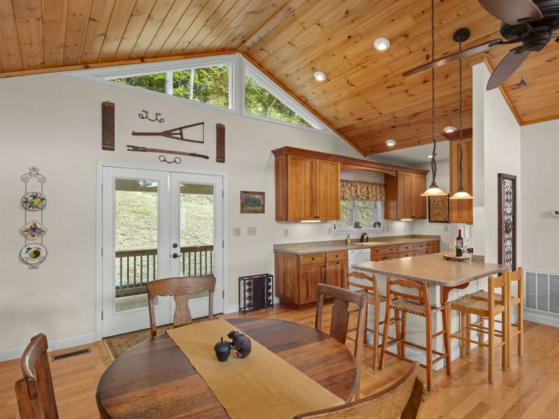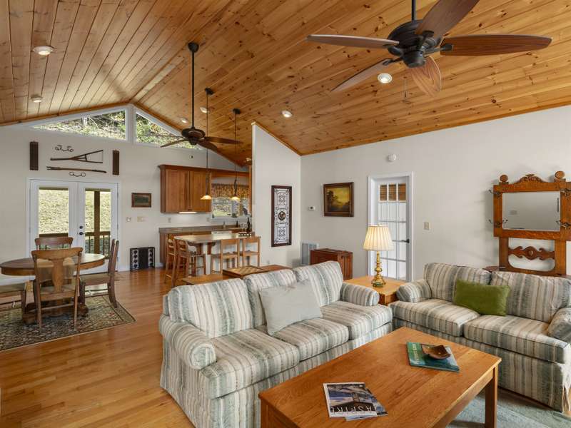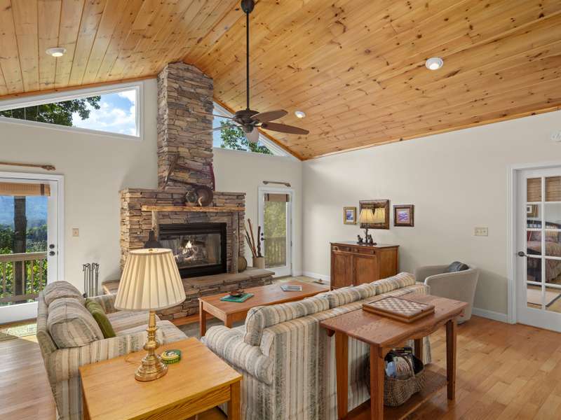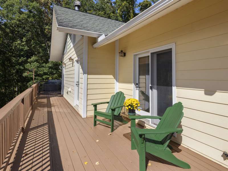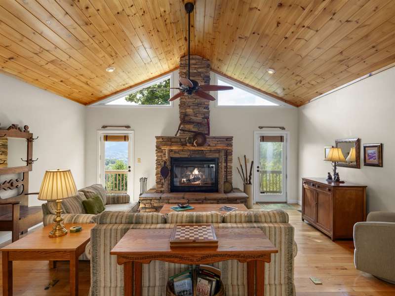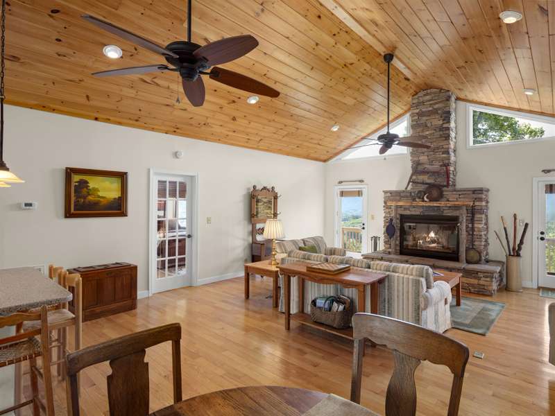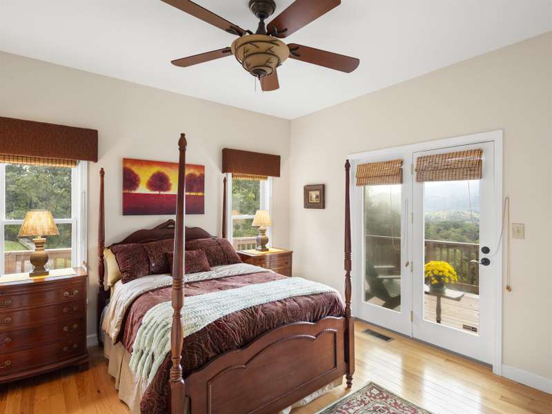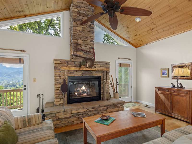This stunning residence ? a 3 BR/3BA/2.5 car garage with an additional DETACHED oversized 2-car garage and studio/accessory dwelling unit (ADU), bathroom, and stand-up attic ? enjoys year-round mountain views of Cold Mountain and the Pisgah Forest beyond. This Western North Carolina sanctuary is thoughtfully designed forprivacy and low maintenance. The home is equipped with a Generac generator to provide continuous power for your peace of mind. Enjoy your morning coffee and sip wine at sunset from your favorite spot on the wrap-around open-air deck that provides breathtaking views of the sweeping vistas, peaks and valleys. A covered deck/porch greets and welcomes you before entering the home. Step inside the front door to be impressed by the natural beauty of the tongue-and-groove, white pine cathedral ceiling, and the great room gas log, stone fireplace, flanked by overhead windows and glass paned doors on either side that lead to the open-air deck and the amazing panoramic views beyond. A perfect place for entertaining and gathering, the open concept mainlevel allows ample space for interaction among friends and family. The kitchen is equipped with Corian countertops and beautifully crafted, custom shaker-style cabinets. The laundry/mud room and pantry area, adjacent to the kitchen, provides sought-after additional storage. The split-plan bedrooms boast ensuite bathrooms. The primary suite is a true sanctuary with elegant French doors leading to the bubbling hot tub that, again, captures the amazing mountain views. The primary ensuite includes a large walk-in closet as well as a spacious bathroom with a custom-tiled, walk-in shower and a beautiful claw-foot cast iron soaking tub. The main-level guest suite shares the same picturesque views. The terrace lower level provides additional living/flex space, an under-stair closet, a third bedroom, a separate bathroom, and access to the 2.5 car garage. The oversized, DETACHED, 2-car garage, studio/ADU and bath, with stand-up attic space above, allows additional living and storage space. The French doors of the studio lead to a private lawn ? a true secluded oasis. The Generac generator, two leased propane tanks, a private well with pressure tank and water filtration system, ensuresyour comfort throughout the year. Don't miss this opportunity to enjoy your own private mountain paradise. Schedule your showing today! Furnishings negotiable. This property experienced NO DAMAGE during Hurricane Helene.