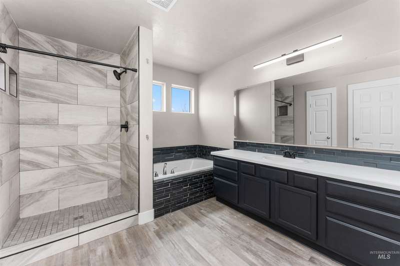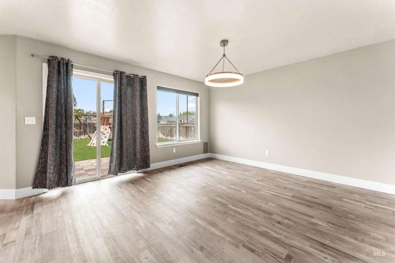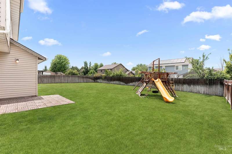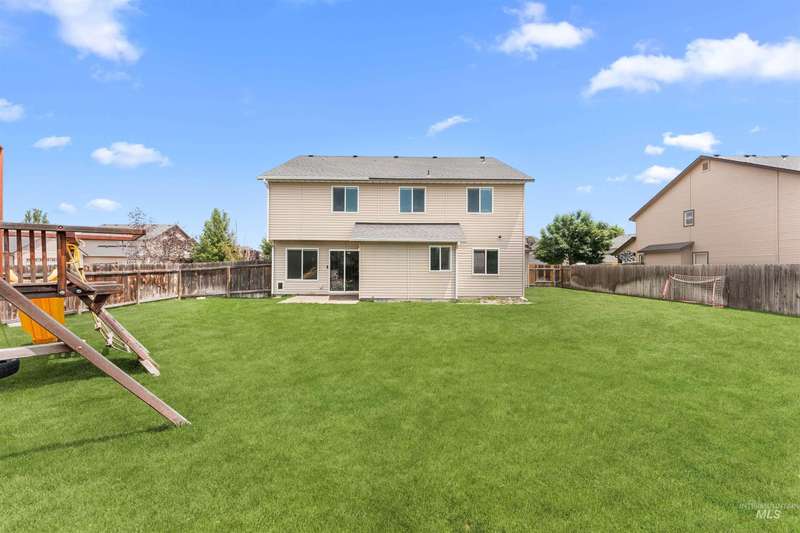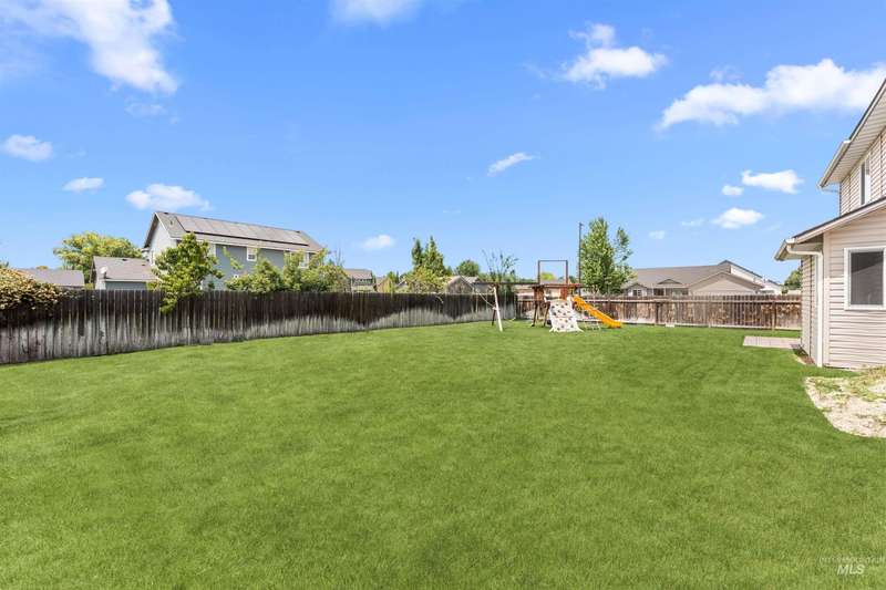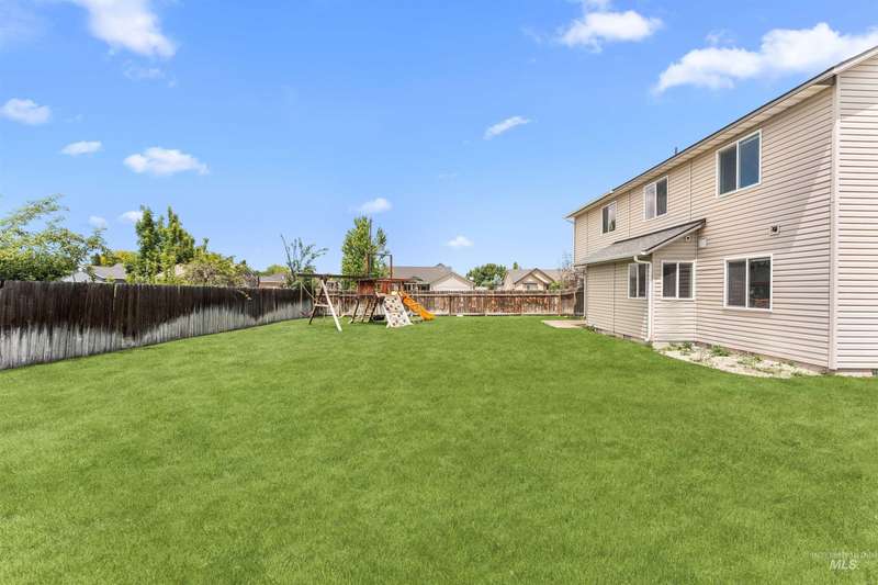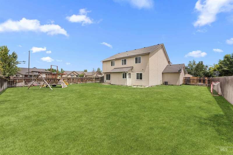 Welcome to your ideal Meridian retreat! Nestled on a spacious corner lot, this beautifully maintained home offers comfort, space, and functionality for the whole family. Step inside to discover a large, open common area perfect for gathering and entertaining. The master suite features a luxurious tiled walk-in shower, a relaxing soaker tub, and a massive walk-in closet that’s sure to impress. Upstairs, a generous landing area provides flexible space for a home office, playroom, or lounge. The expansive backyard is a dream for outdoor living — complete with a swing set/play set and plenty of room to roam. Additional features include a 3-car garage with built-in shelving, a central vacuum system for convenience, and a thoughtfully designed layout throughout. Located in a desirable Meridian neighborhood, this home is ready to welcome its next owners.