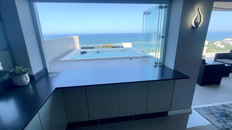 Introducing a stunning 4-bedroom apartment in the exclusive Simbithi Eco Estate, offering luxurious living with breathtaking 180-degree sea views overlooking Thompsons Tidal Pool. This beautifully designed home features spacious bedrooms with ample cupboard space, modern bathrooms with built-in rain showers, and air conditioning throughout. The additional bar/island area is equipped with extractor fan, and gas stove top, perfect for entertaining. Enjoy the serene outdoor lifestyle with a private patio, Jacuzzi, and mesmerizing sea views. The property includes three parking bays with lift access directly to the unit. Residents have access to 29 fishing dams, walking and biking trails with abundant birdlife and several community centers. This property is not just a home but an excellent investment opportunity with a current long-term rental income of R50,000 per month. Experience a secure and tranquil lifestyle in one of the most sought-after estates on the North Coast.