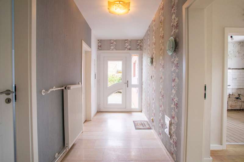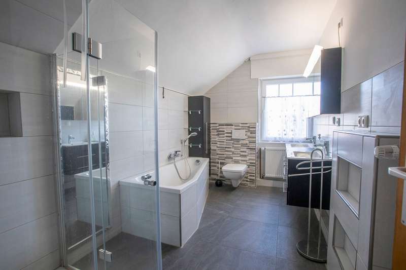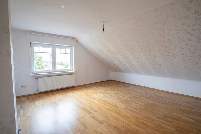 This detached property was built in 1970 on a plot of approx. 505m² in a quiet and mature location on the edge of the village. Here, nature begins almost on the doorstep. The property has already been largely modernized in the last 15 years. The detached house does not have a basement and has a well-distributed and spacious living area of approx. 146m², which is divided as follows: On the first floor is the spacious living/dining room with access to the terrace and garden, hallway, utility/storage room, guest WC and the kitchen with adjoining storage/laundry room, which also offers practical access to the garage. The top floor has three bedrooms (two of which have access to the balcony) and a spacious shower/bathroom with two washbasins. The terrace with electric awning, which was renovated in 2022, or the balcony are perfect for enjoying the sun at any time of day. The garage, which is equipped with an electric sectional door, and the driveway area offer space for your fleet of vehicles. Two garden sheds round off the offer.