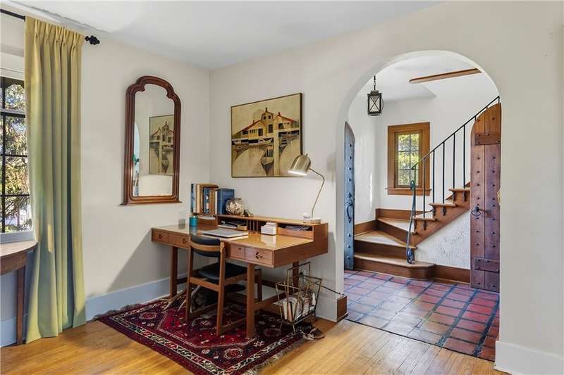 Welcome to 503 Edgewood Dr. This stunning Mediterranean inspired stucco home is a perfect blend of timeless elegance and rustic charm set on a lush well maincured gardener's 1.54 acre dream lot with a stone fence and a stately driveway that enters from Edgewood Dr. and continues to the gated entrance off of Guinnip Ave. where the 2 car detached garage with a studio apartment offers additional living quarters. Steeped in rich local history this beautiful home offers modern contemporary comfort while keeping its original charm and elegance throughout. Once inside, you'll be surrounded by gorgeous arched doorways and solid walnut doors that balance the design with wrought iron accents. The foyer welcomes you with terra cotta tiled flooring and a gracious archway that opens into the formal living room with original hardwood floors and gas fireplace with a comfortable elegance that is perfect for entertaining. The gracious formal dining room is spacious and flows seamlessly from the formal living room and into the gourmet chef's kitchen with dining area. The well appointed kitchen with gorgeous granite throughout and cork flooring is sleek and updated while maintaining the warmth of the original kitchen. Just off the dining room is a comfortable den/family room that is a great space for relaxing with a view of the side yard. The second level offers a generous owner's suite with bath and 3 good sized additional bedrooms with a hallway guest full bath. Currently the 4th bedroom, which has access to the walk up attic, is being used as a wonderful walk-in closet. The attic could easily be finished and would make a great 5th bedroom, office or playroom. The lower level with 200 amp electric service, newer furnace, hot water tank and central air offers great storage space and could be finished if desired.Outside you'll enjoy the stone patio and the spacious yard surrounded by the stone fence and steps that lead down to the main entrance. The apartment over the garage offers wonderful private additional living space for extended family or a tenant. This exquisite home is only a short drive or walk to Centralus Health, LECOM and Elmira College.
