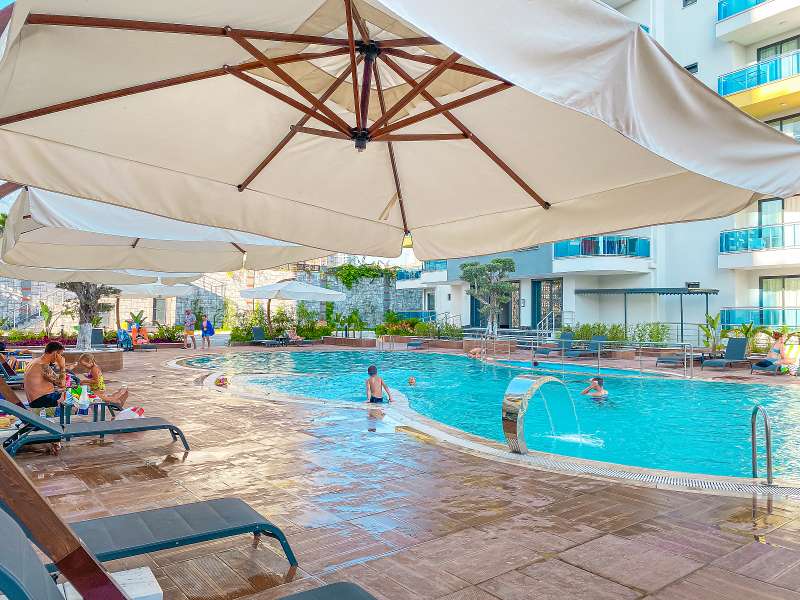 The four-block complex is located in the central location of Mahmutlar, 550 m to pharmacy and schools, 620 m to the sea and beach, 1 km to the market, 1 km to Mahmutlar shopping center, 12 km to Alanya city center, 26 km to Gazipasa airport.