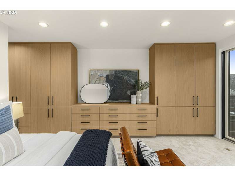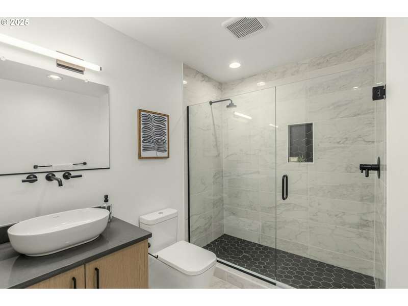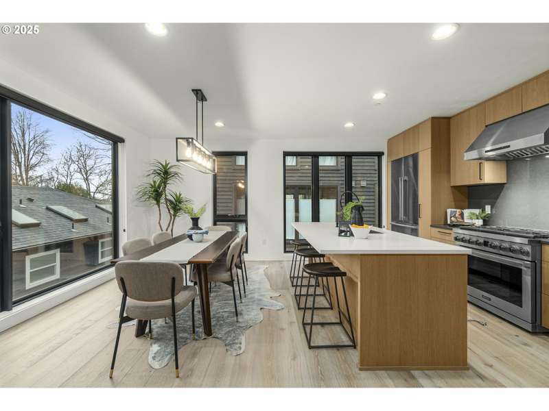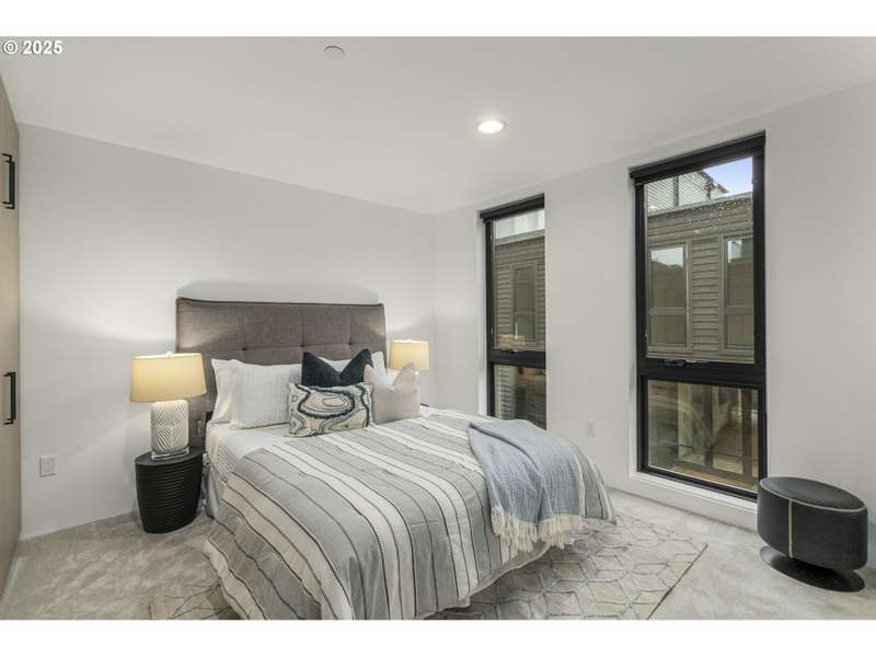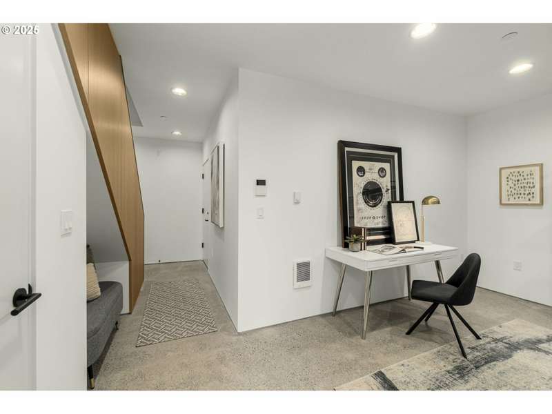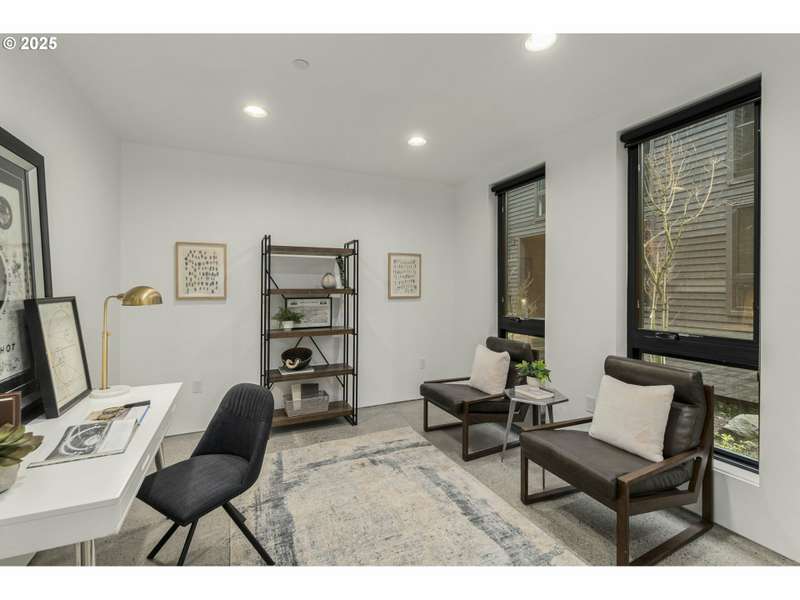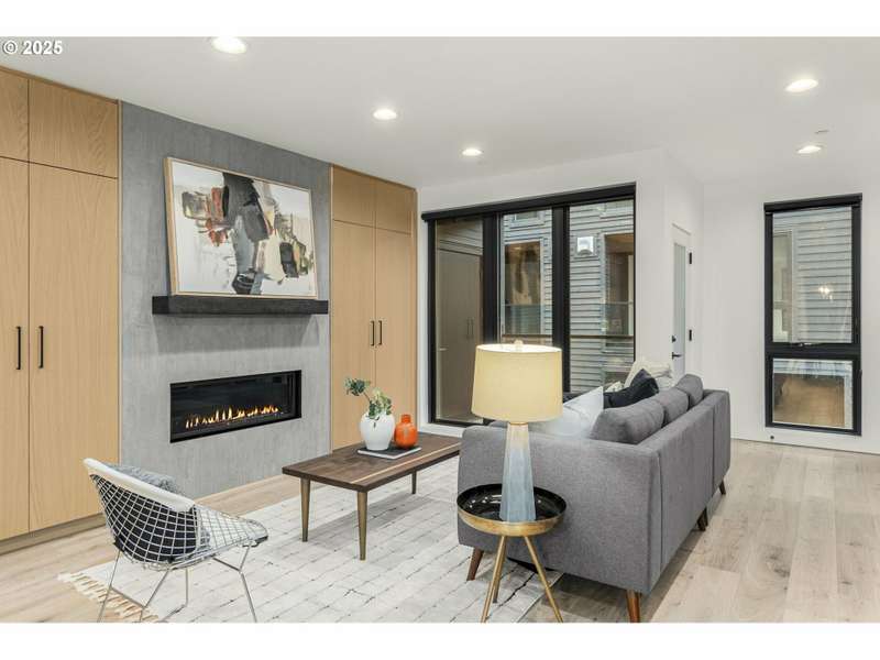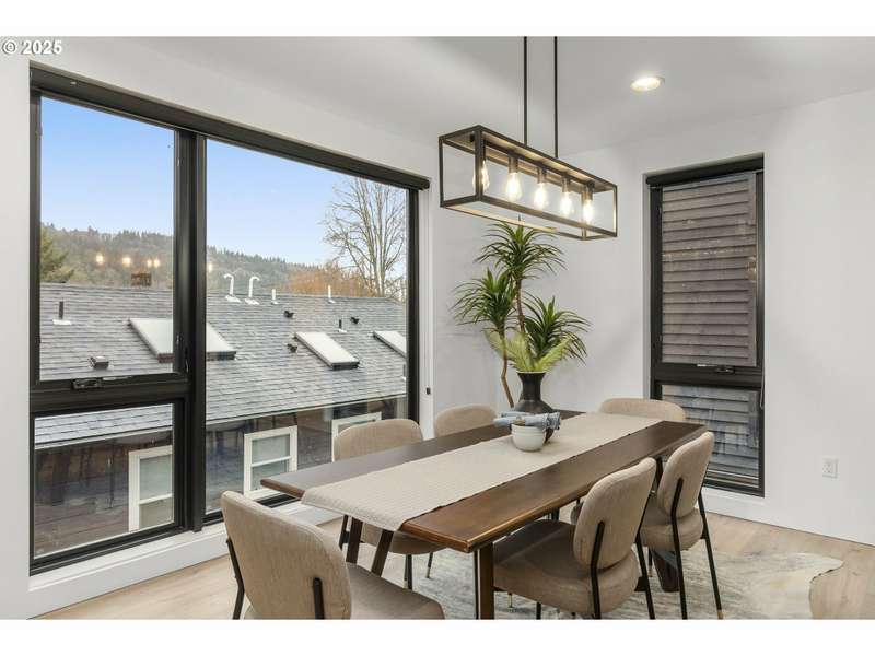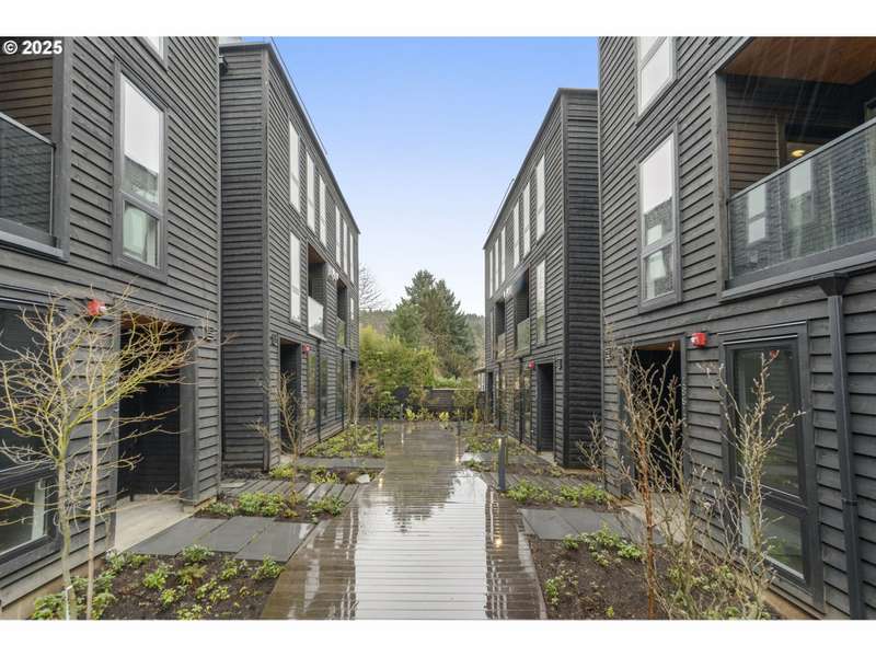 Nestled at the edge of Forest Park, enjoy life in an established quiet neighborhood in your stunning contemporary home in the Balch Creek Townhomes. Thoughtfully designed by FieldWorks, this home features clean lines and fine finishes - custom cabinetry throughout, wide plank hardwood floors, polished concrete, and impressive walls of windows. This home (the larger of the two available floorplan types) has 3 bedrooms and a first floor bonus / office area. Living room is anchored with a beautiful fireplace with custom European plaster surround, and tons of built in storage. Kitchen features a large island with extra seating, Viking appliances, slab quartz counters, and access to a covered patio with storage space. Two guest bedrooms share a 3rd floor bathroom, and have easy access to a convenient extra space - perfect for a reading nook or at home work space. The top floor features a luxurious primary suite complete with huge shower, elegant soaking tub, Duravit fixtures, and a rooftop deck with beautiful territorial views. One car attached garage (wired for EV) has lots of extra storage space, and is accessed secured via a secure gated driveway entry. A bold, modern development with easy access to the Thurman corridor and all its shops, bakeries and dining.
