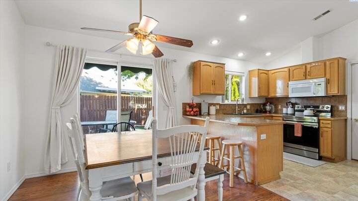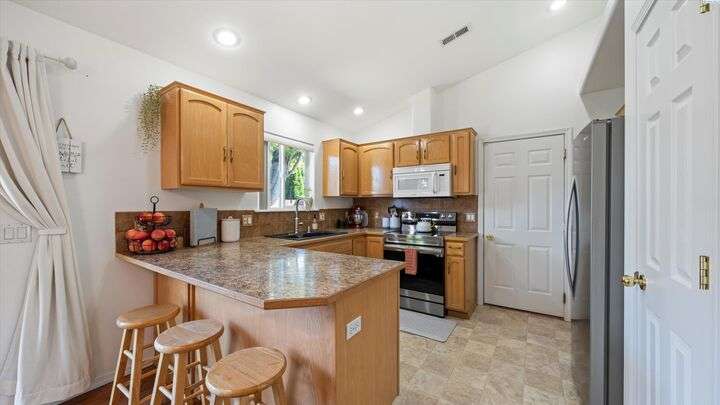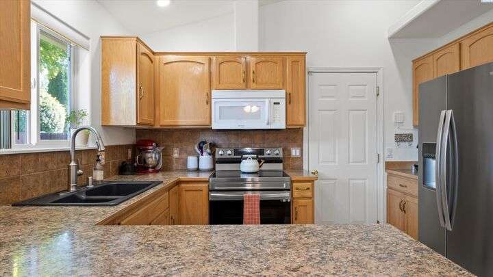 MLS# 288078 Motivated seller! This well-maintained 3-bed, 2-bath rambler offering 1,238 sq ft is tucked away on a corner lot in a cul-de-sac so no through traffic and yet just moments from schools, restaurants, shopping, parks and the library! Step inside to a bright, functional layout featuring a spacious living area, convenient dining area and kitchen with a breakfast bar and pantry. Three comfortable bedrooms with generous closets provide plenty of storage and flexibility. Outside, the fully fenced yard is ideal for gatherings or a quiet afternoon in your shaded retreat—with a patio for relaxing, a mature tree perfect for climbing or swinging and storage shed to keep your garage from being cluttered with yard tools! The extended garage offers additional storage, and the new roof (installed October 2025) provides added peace of mind. Additional highlights include a gas water heater and a completed pre-inspection along with recently serviced HVAC, making this home truly move-in ready. Pride of ownership and location, location, location truly shine here!