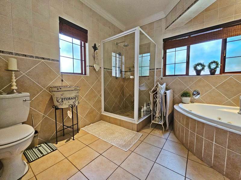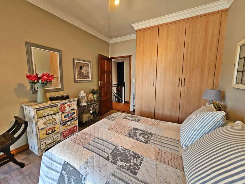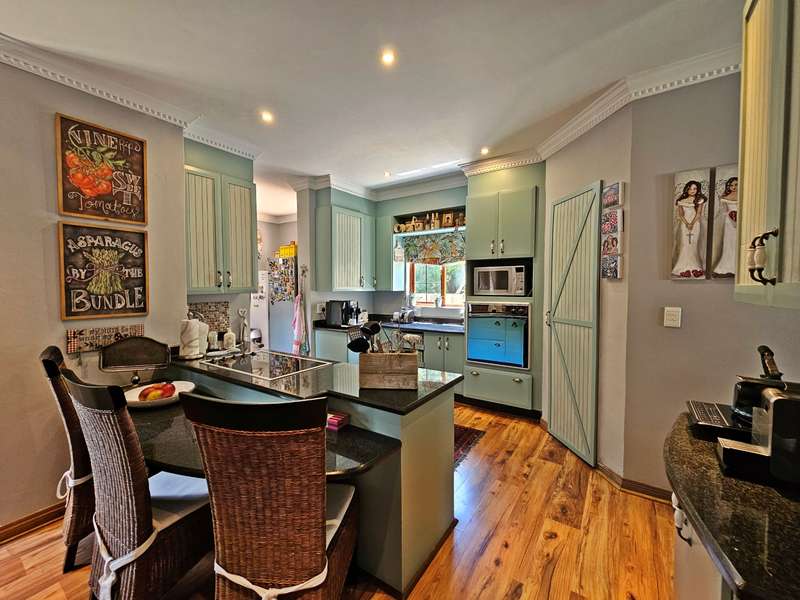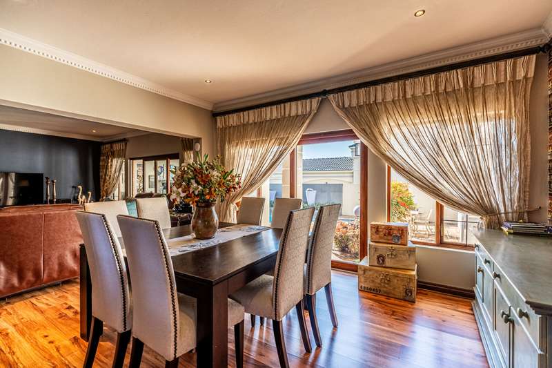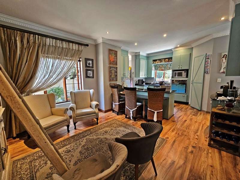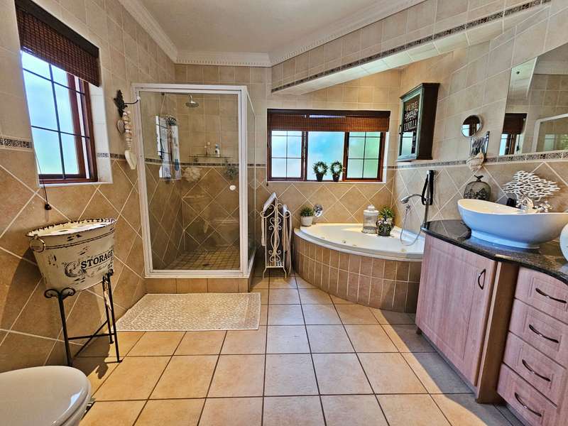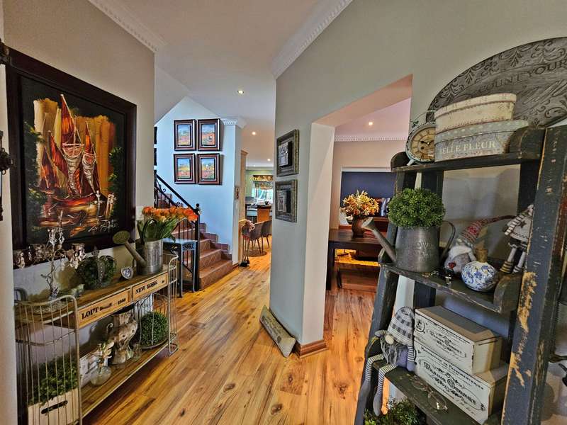 Shared Mandate This spacious home offers a perfect blend of comfort, luxury, and practicality. The large master bedroom is a true retreat, featuring a private en-suite bathroom and access to a balcony with its own secluded lounge area, providing a peaceful sanctuary to unwind. There are also four additional bedrooms that share a well-appointed bathroom, with two of the bedrooms offering access to the balcony. The living spaces in this home are designed for both relaxation and entertaining. The open-plan dining area and lounge flow seamlessly into the kitchen, which is complemented by a scullery and a pantry for extra storage. For added convenience, there's a guest toilet and a store room tucked under the stairs. A study room is also included, offering a quiet space for work or reading. Outdoors, the home features a stunning swimming pool, ideal for those warm summer days, and a covered patio with a built-in braai for year-round entertainment. The property includes four garages, providing ample parking space, and a playroom with an additional storage closet, perfect for a growing family. The home is equipped with a linen closet and a high-quality inverter system, ensuring energy efficiency. The inverter is a 5kW 2023 model, complemented by two 2.3kW batteries and eight 400W solar panels, with the solar system valued at R140k, making this property eco-friendly and cost-effective. Key Features: -Spacious master bedroom with en-suite bathroom and private balcony lounge -4 additional bedrooms sharing a bathroom, 2 with balcony access -Open-plan dining and lounge areas -Modern kitchen with scullery and pantry -Guest toilet and under-stairs storage room -Study room -Swimming pool and outdoor braai area -4 garages, playroom, and additional storage closet -Linen closet -Inverter system with 5kW, two 2.3kW batteries, and 8 x 400W solar panels (solar system worth R140k) **CATS ARE NOT ALLOWED**