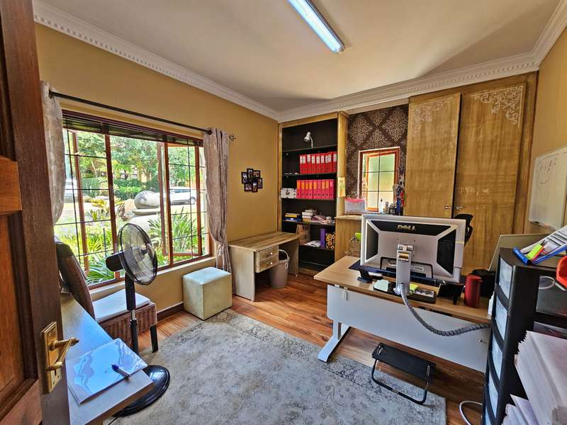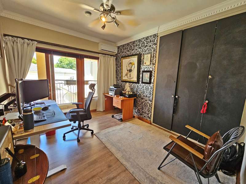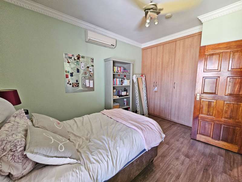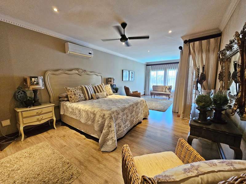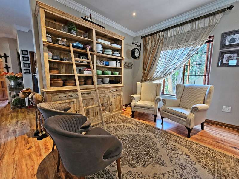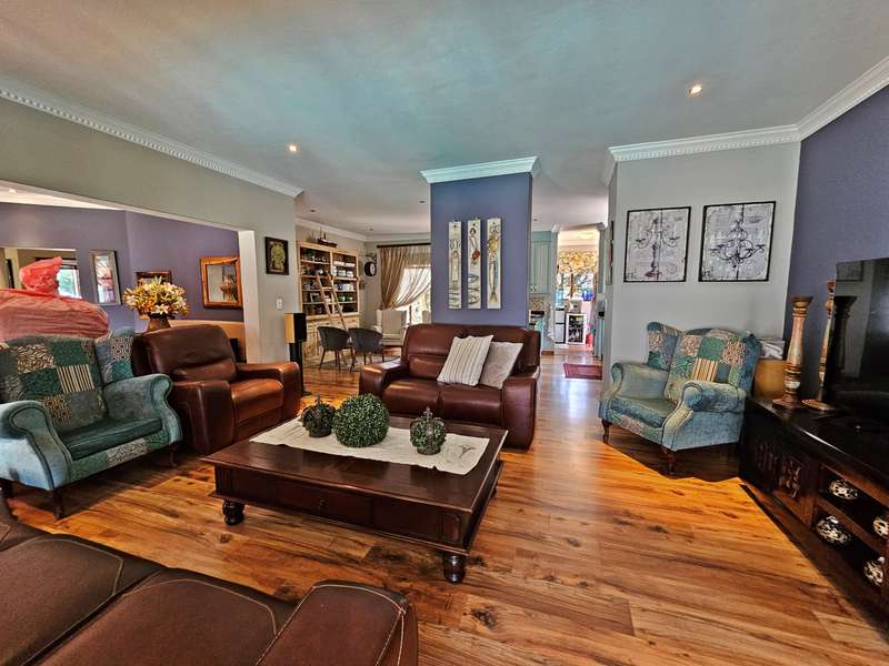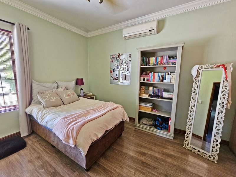 Shared Mandate This spacious home offers a perfect blend of comfort, luxury, and practicality. The large master bedroom is a true retreat, featuring a private en-suite bathroom and access to a balcony with its own secluded lounge area, providing a peaceful sanctuary to unwind. There are also four additional bedrooms that share a well-appointed bathroom, with two of the bedrooms offering access to the balcony. The living spaces in this home are designed for both relaxation and entertaining. The open-plan dining area and lounge flow seamlessly into the kitchen, which is complemented by a scullery and a pantry for extra storage. For added convenience, there's a guest toilet and a store room tucked under the stairs. A study room is also included, offering a quiet space for work or reading. Outdoors, the home features a stunning swimming pool, ideal for those warm summer days, and a covered patio with a built-in braai for year-round entertainment. The property includes four garages, providing ample parking space, and a playroom with an additional storage closet, perfect for a growing family. The home is equipped with a linen closet and a high-quality inverter system, ensuring energy efficiency. The inverter is a 5kW 2023 model, complemented by two 2.3kW batteries and eight 400W solar panels, with the solar system valued at R140k, making this property eco-friendly and cost-effective. Key Features: -Spacious master bedroom with en-suite bathroom and private balcony lounge -4 additional bedrooms sharing a bathroom, 2 with balcony access -Open-plan dining and lounge areas -Modern kitchen with scullery and pantry -Guest toilet and under-stairs storage room -Study room -Swimming pool and outdoor braai area -4 garages, playroom, and additional storage closet -Linen closet -Inverter system with 5kW, two 2.3kW batteries, and 8 x 400W solar panels (solar system worth R140k) **CATS ARE NOT ALLOWED**