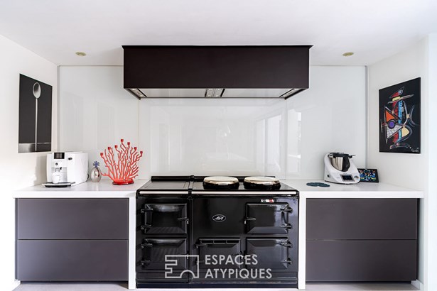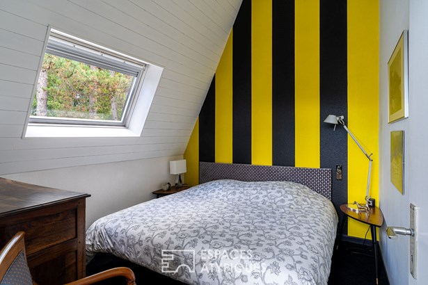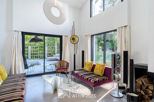 The outdoor spaces have been designed as an extension of the house. A beautiful terrace borders the 9×3 m swimming pool, set in a perfectly landscaped garden with two outbuildings. This privileged environment, promising absolute calm, benefits from quick access to all amenities. Shops, schools, and transportation are only a five-minute drive away.