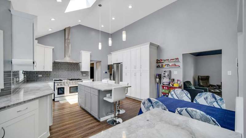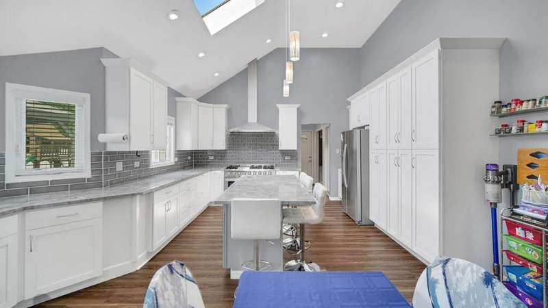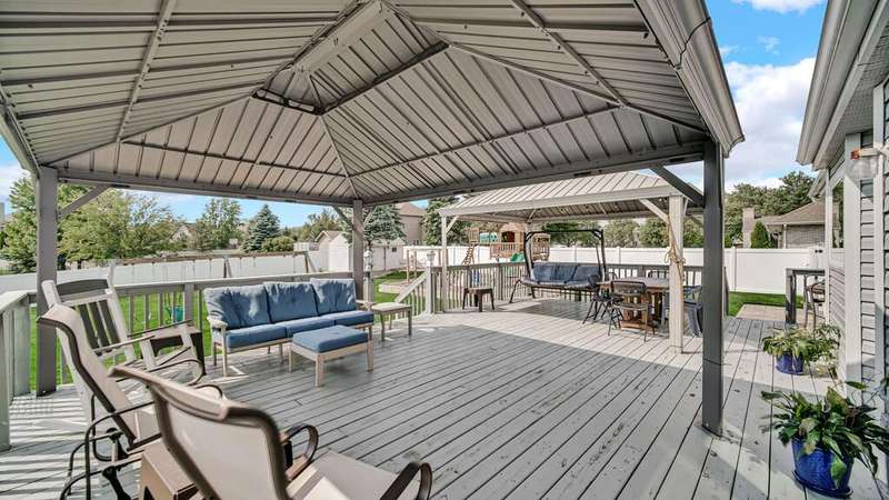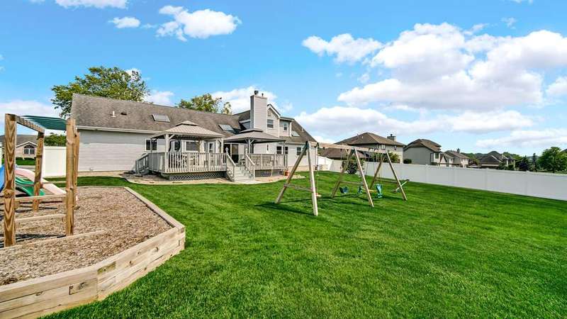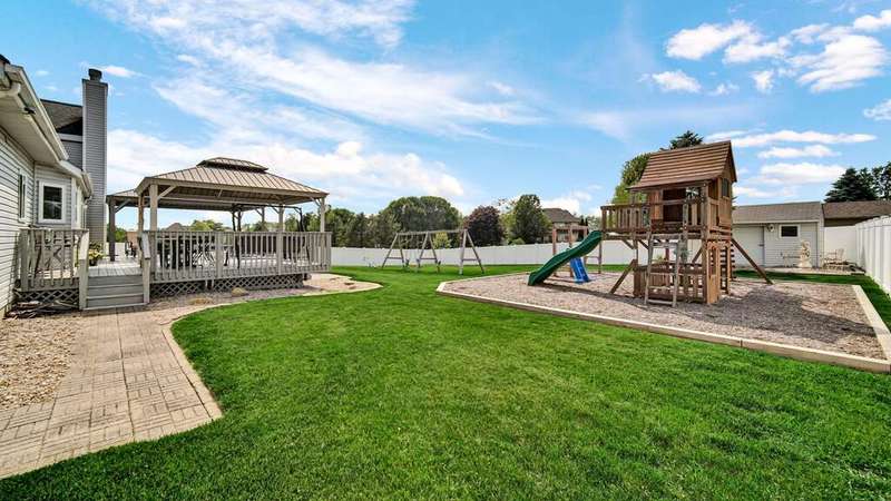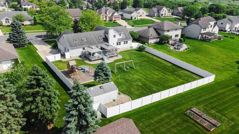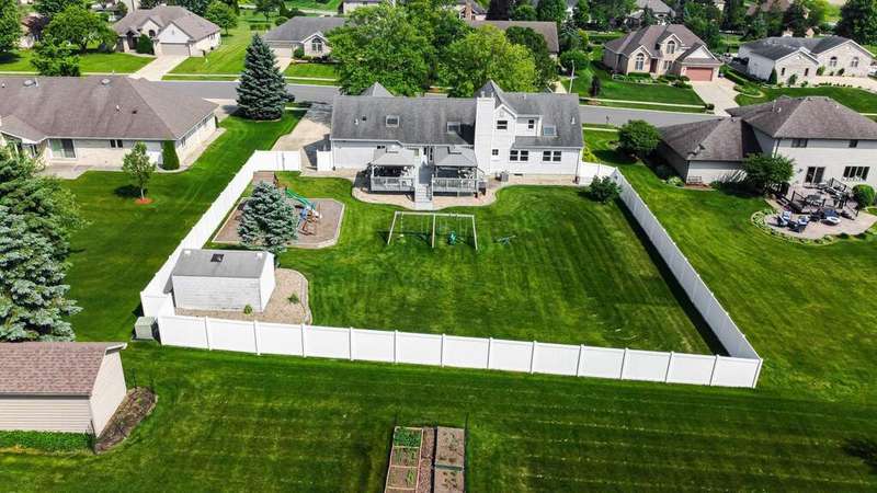 HALF-ACRE LOT 5,000+Sqft of LIVING SPACE FINISHED BASEMENT HUGE BACKYARD w/ PVC FENCE, DECK, PERGOLAS, & SHED. Spacious 5 Bdrm/4.5 Bth, 1.5-Sty Home in SCHILLTON HILLS SUBDIVISION WELCOMES YOU to Expansive Living across 3 Levels. Vaulted Foyer w/ Modern Staircase opens to Living & Formal Dining Rooms w/ Tray Ceiling. REMODELED KITCHEN features Quartz Countertops, Island Seating, Glass-tile Backsplash, Skylight, & Stainless Chef's Range. Kitchen overlooks Vaulted Great Room w/ Skylight & Fireplace. MAIN FLOOR PRIMARY SUITE includes Quartz-top Vanity, Soaking Tub, & Walk-in Shower. Upstairs provides Loft & 2 Add'l Bedrooms. FINISHED BASEMENT adds Rec Room, Wet Bar, Guest Suite, Bath, & Multi-Functional Room ideal for Gym, Media, or Office. PRIVACY FENCED BACKYARD w/ Deck, Pergolas, Play Area, & Shed. Be sure to check-out the 3D TOUR & FLOOR PLAN. 0.2 mi to Schillton Hills Park ~1 mi to US-41, The Daily Drip Coffee, Walgreens, & Strack & Van Til Grocery.