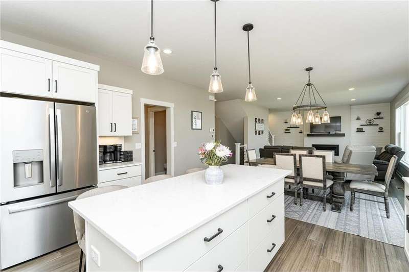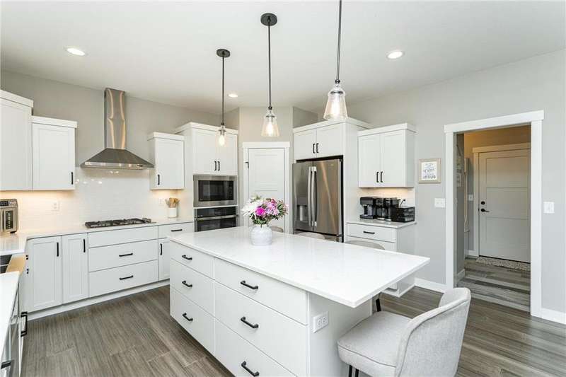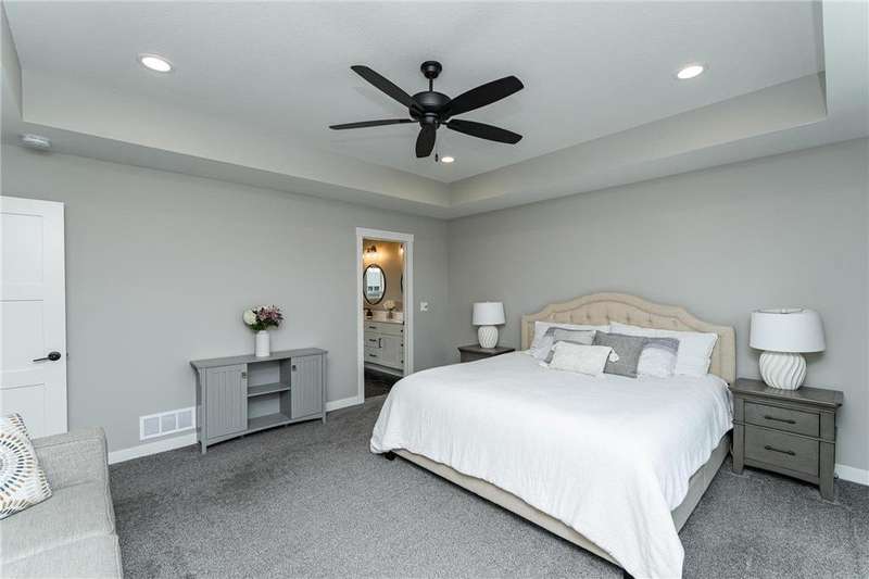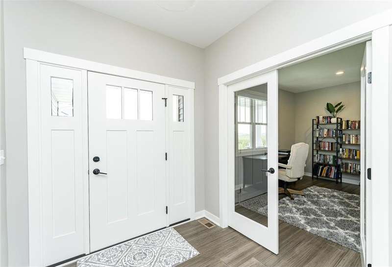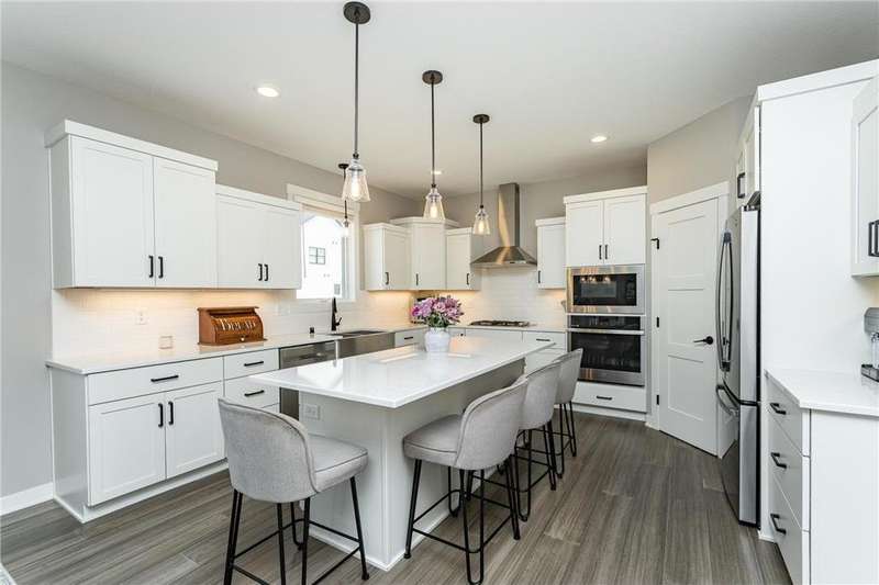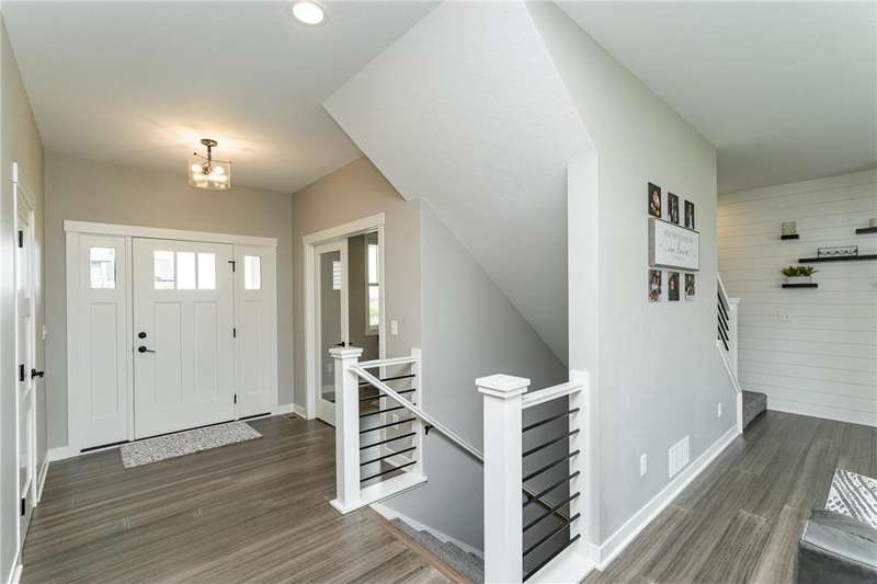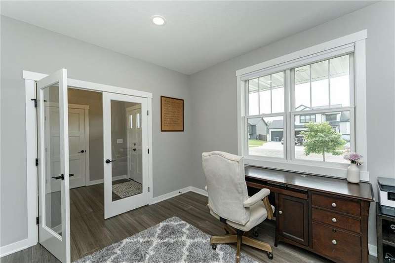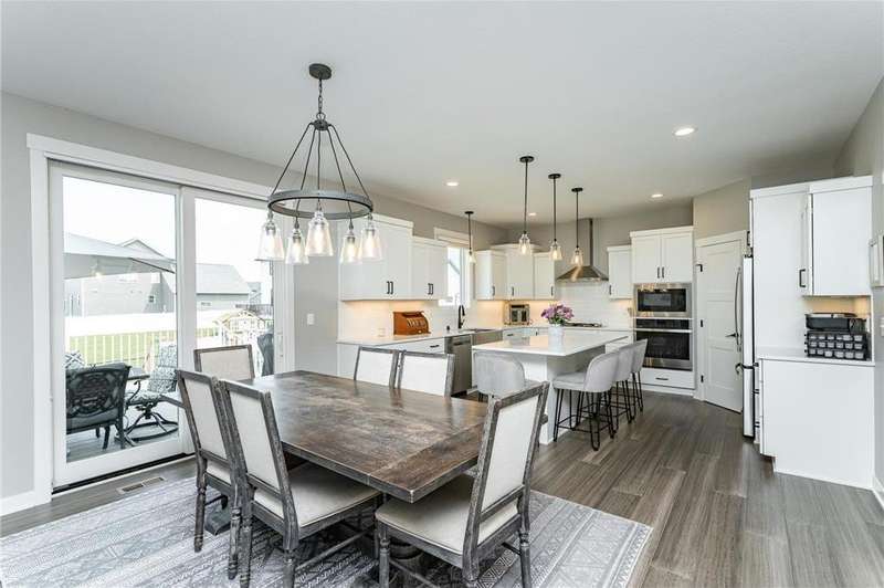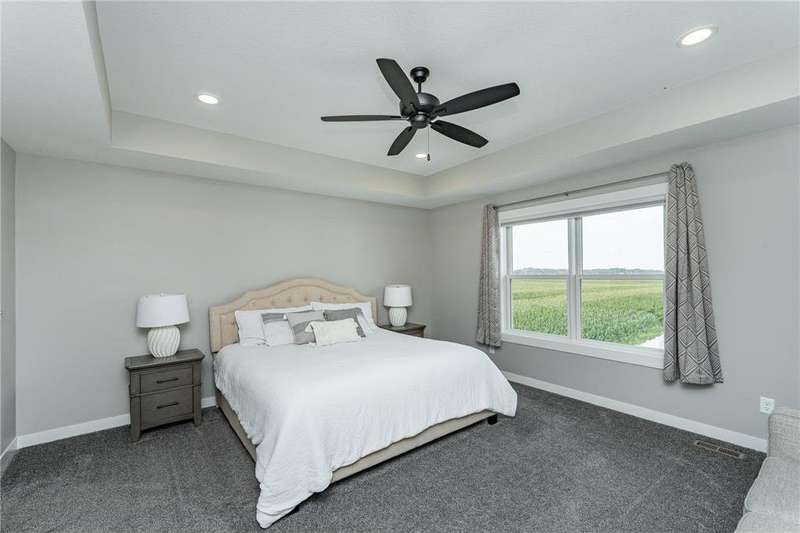 This stunning 5-bedroom, 4-bath home sits at the very end of a quiet road, offering picturesque views of open farmland. Step inside to a spacious, open floor plan featuring a large foyer, dedicated office, and a light-filled living room with expansive windows and a cozy gas fireplace. The dining area opens to a deck that overlooks the fenced backyard and farmland to the west—perfect for enjoying breathtaking sunsets. 4 bedrooms on the upper level, the primary is spacious with it's own private bathroom, walk-in shower and closet this home is designed for both comfort and functionality. The kitchen is bright and offers a large island with seating, generous pantry, and abundant cabinet space. A convenient laundry/mudroom leads to the finished, heated garage. The lower level boasts daylight windows, a second gas fireplace in the expansive family room, a fifth bedroom, a full bath, and ample storage space. Nice flat yard with irrigation system, located near a city park, shopping, restaurants, bus lines, and medical facilities, this home offers the perfect blend of peaceful living and everyday convenience.