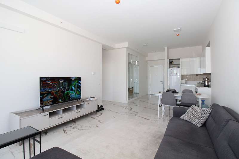 The luxury apartment includes two bedrooms, a bright living room, a modern open-plan kitchen, two bathrooms (one en-suite), a spacious balcony, a practical storage room, and a laundry area. Equipped with underfloor heating, high-quality built-in appliances, satellite TV and fiber internet infrastructure, central heat cost allocator, and smart details, the apartment offers an exceptional blend of aesthetics and functionality. It is offered for sale fully furnished. However, for buyers who prefer an unfurnished option, a suitable discount will be applied to the sales price.