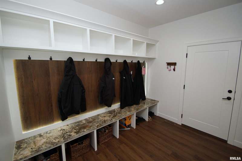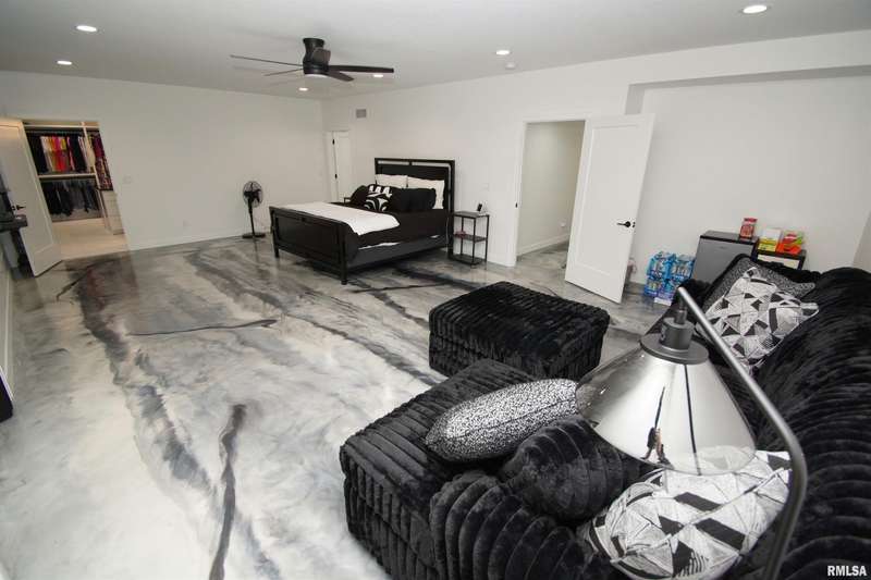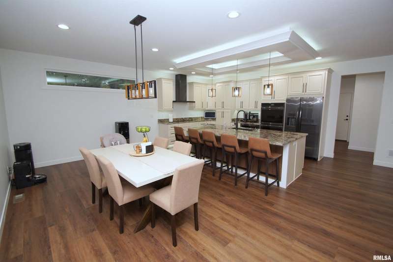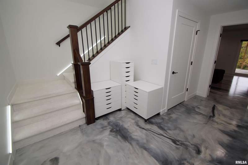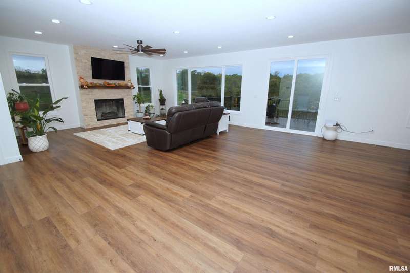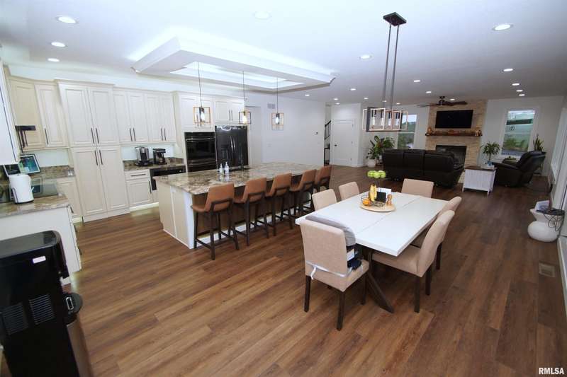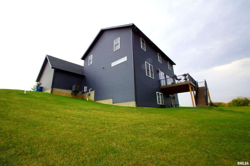 Milan Illinois Real Estate For Sale! This Newly Built Stunning 2 Story Home has LOADS of Extras Including: Private Wooded Backyard on 1.2 Acres, Access to Huge Stocked Lake, 5 Large Bedrooms, 3.5 Bathrooms, 9' Ceilings on All 3 Floors, OverSized 40 x 26 3 Car Garage w/ Quiet Garage Doors & Side Access Door, 2 Laundry Rooms, Walk-Out Basement Leading to 21 x 12 Concrete Patio, Beautiful Epoxy Floors in Basement, Massive 17 x 13 Primary Walk-In Closet with Custom Built-Ins & Quartz Counter on Island & Chandelier, Primary Bathroom Includes Whirlpool Tub & Tiled Walk-In Shower w/ Rain Shower Above, Dazzling Kitchen w/ Large Island w/ Farm Style Sink & Under Cabinet Lighting & Slow Close / Dovetail Drawers & Tray Ceiling w/ Lighting, Double Oven & Induction Cooktop in Kitchen, Huge Hidden Pantry w/ Custom Built-Ins & Granite Counter & Auto Lighting, 21 x 12 Composite Deck, 18 x 9 Front Covered Porch, Tankless Water Heater, & Tons of Natural Light Throughout!