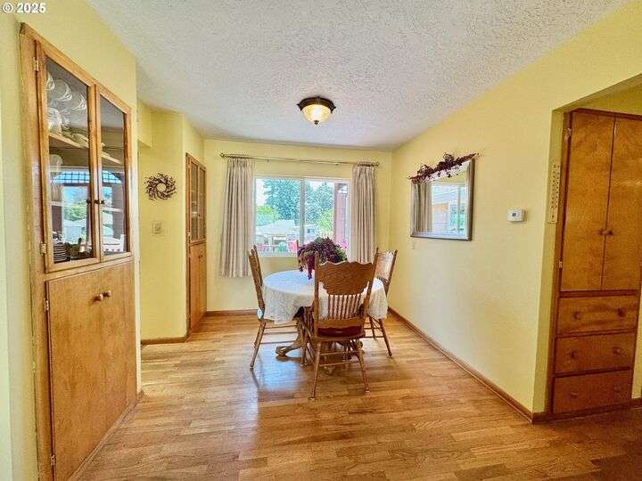 **See virtual tour**Charming vintage home in quiet neighborhood. 1457 sq. ft. on main w/ 3 bedrooms,1.5 baths, living room, family room, & 1 car attached garage. 437 sq. ft. basement/bedroom w/ closet, heat & exterior entrance. Tons of storage throughout! Hardwood floors, wood fireplace, formal dining & built-ins*newer vinyl windows*Large fenced backyard on .23 acres with partially covered deck plus 2 car detached garage/shop with bbq area & entertainment area.