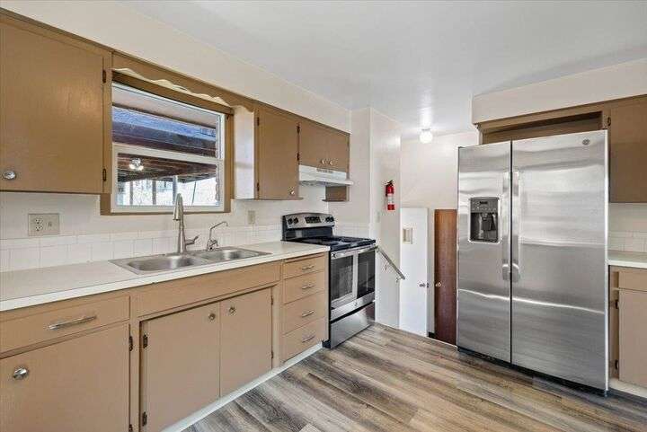 Adorable 4 bed 2 bath brick home with sweet, secluded fenced front and backyard with covered patio. This home has a newer electrical system, windows, paint, updated bathrooms and floors and a huge garage with shop area. A great location, close to everything yet on a quiet street. This home is dialed in and move in ready!