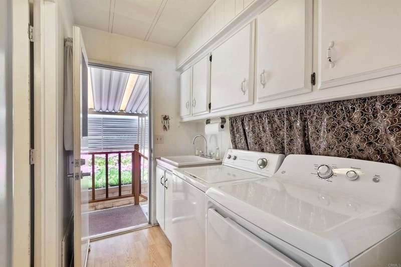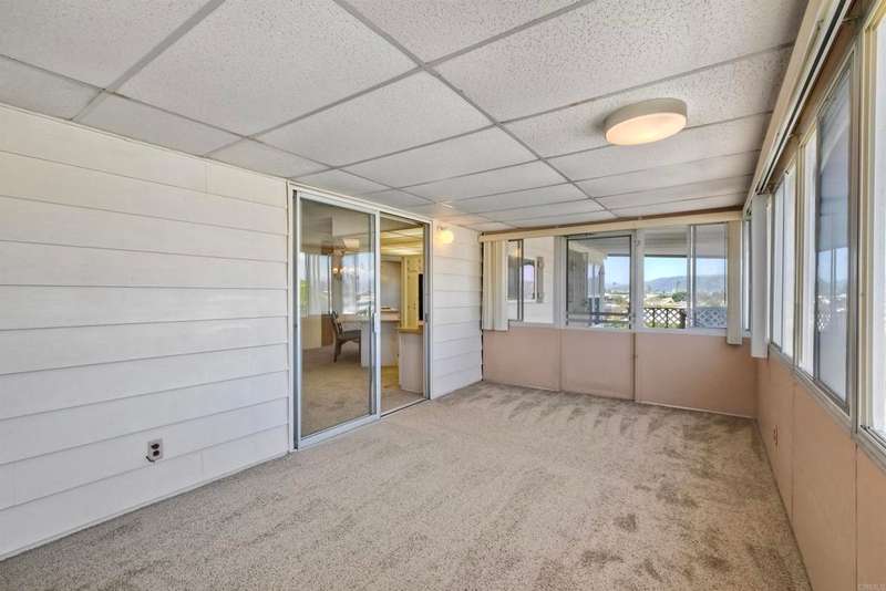 Nestled high on the hill this fantastic home has great views of the mountains in the distance. Light and bright inside, the layout is spacious with a bonus attached room with lots of windows, offering a nice breeze and great location in the park. New carpet and a roof that is 3 years young. La Moree Estates is a 55 plus community where residents own the land. The HOA fee includes a community pool, clubhouse, RV parking (if available), water, trash, sewer and cable. Conveniently located to shopping, 78 freeway, Palomar and Kaiser hospitals.