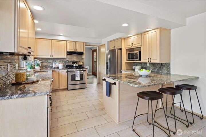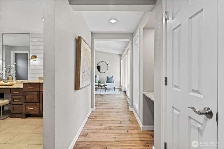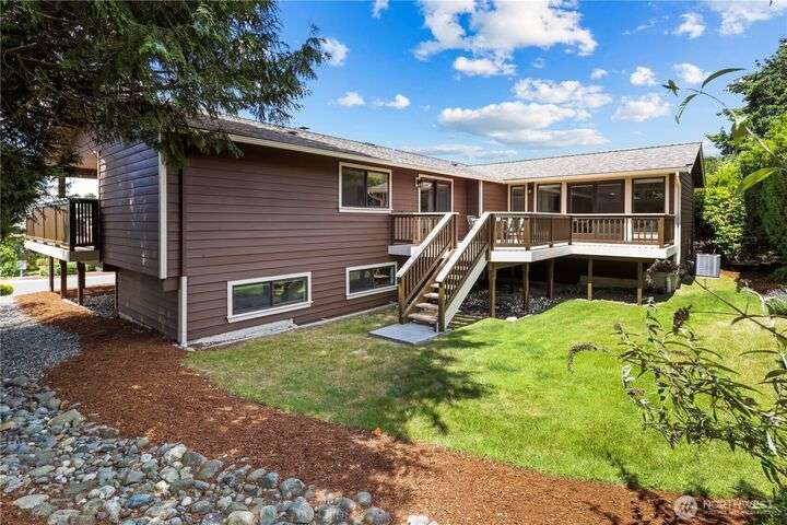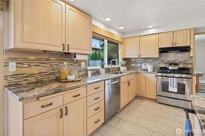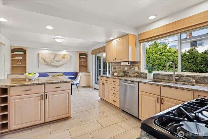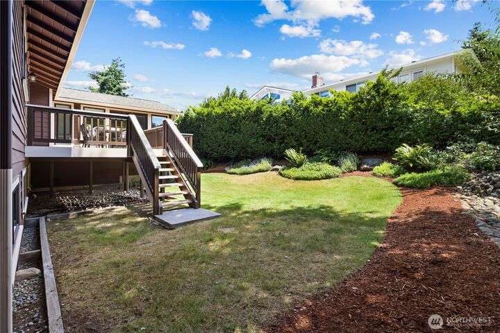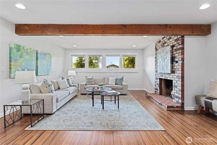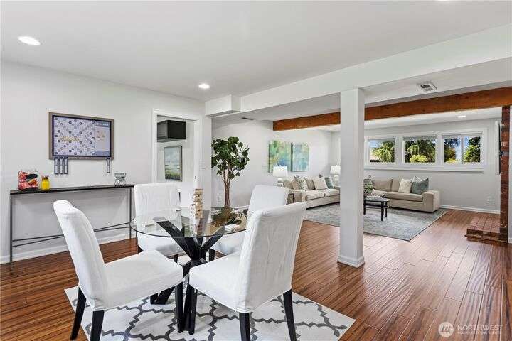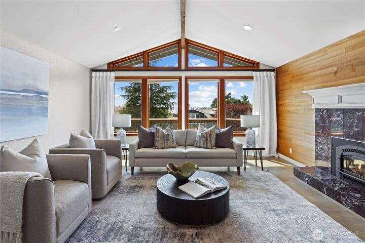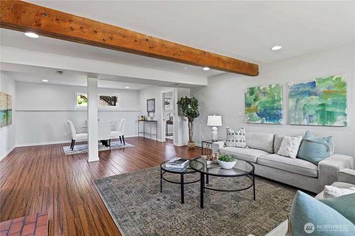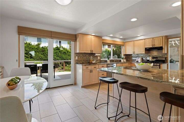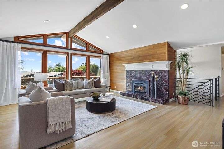 This beautiful 4 bed, 3 bath home is your serene urban oasis at the end of a quiet cul-de-sac in coveted Houghton w/ views of the lake, mountains & sunsets. Living room w/ wall of windows, vaulted beamed ceiling & fireplace, formal dining area leads to covered deck. Gourmet kitchen w/ S/S appliances, heated floors, & casual dining space with access to private back yard & deck. Primary suite of your dreams w/ luxury bath, huge walk-in closet w/ organization + opens to back deck. 2 additional bedrooms & hallway bath complete this level. Large lower level family room w/ fireplace + rec/game room or workout area, and a home office w/ full bath (4th bedroom). Very close to downtown, waterfront, schools, I-405, 520, Bellevue, Redmond, Seattle.