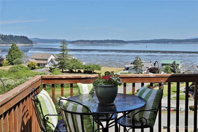 Welcome to your slice of heaven with spectacular views of Dugualla Bay. Situated on the hillside overlooking the 29 acre Dugualla Hts Conservation Easement protected by the Whidbey Camano Land Trust. One of the lowest $ per sq ft and biggest views!!! Enjoy views from all your main living spaces- so bright with loads of windows & 3 skylights. Many charming & unique touches- vintage mantel w/ mirror, stained glass windows, leaded glass, hardwood fls, 1 gas and 1 wood burning fireplace, den w/ trundle bed, and so much more. Large deck to sit, relax and take in sunsets, sunrise and eagles flying by. Huge upper back yard waiting for your creative touches. Minutes to the community beach and clubhouse. Sense of pride in this neighborhood.