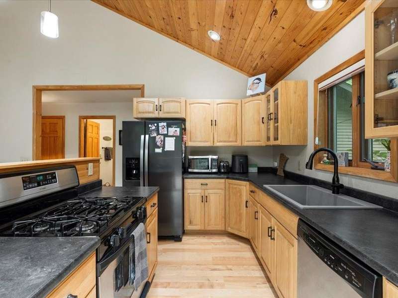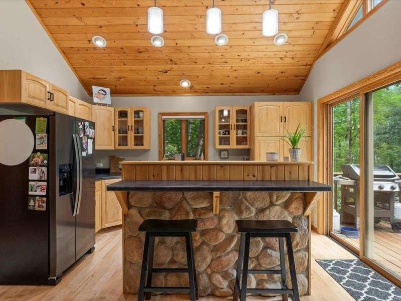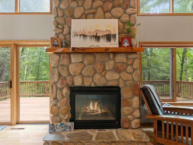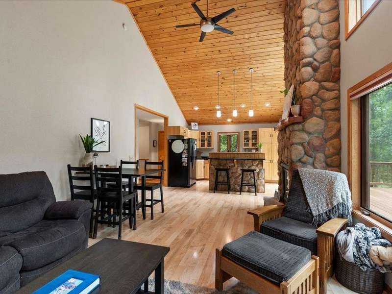 Tucked among the trees, this beautifully maintained 3-bedroom, 2-bathroom home offers the perfect blend of warmth, comfort, and natural charm. From the moment you step inside, you're greeted by a stunning vaulted wood ceiling and a floor-to-ceiling stone fireplace that anchors the open-concept living space—ideal for both quiet evenings and lively gatherings. The kitchen is thoughtfully designed with natural wood cabinetry, sleek black countertops, with black and stainless-steel appliances—flowing seamlessly into the dining and living areas for effortless entertaining. Large windows throughout bring in an abundance of natural light and offer peaceful wooded views. The home features a main-level bathroom with updated fixtures and a convenient layout, while each bedroom offers cozy ambiance. Step outside to enjoy your private decks, ideal for morning coffee or grilling under the canopy of pines. Nestled on a quiet, tree-lined drive just minutes from golfing, boating, dining, and the amenities of Breezy Point Resort and the Whitefish Chain, this home offers the ideal setting—whether you’re seeking a year-round residence or a weekend getaway, it’s truly a must-see.