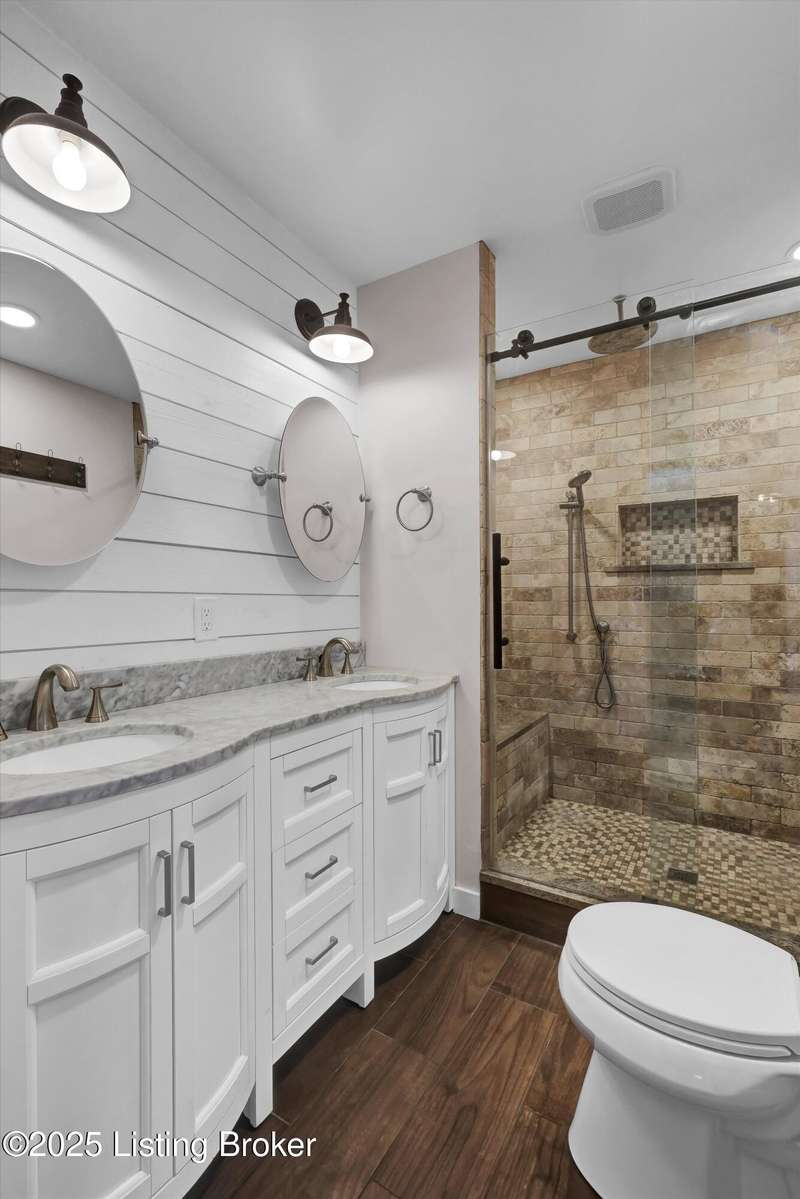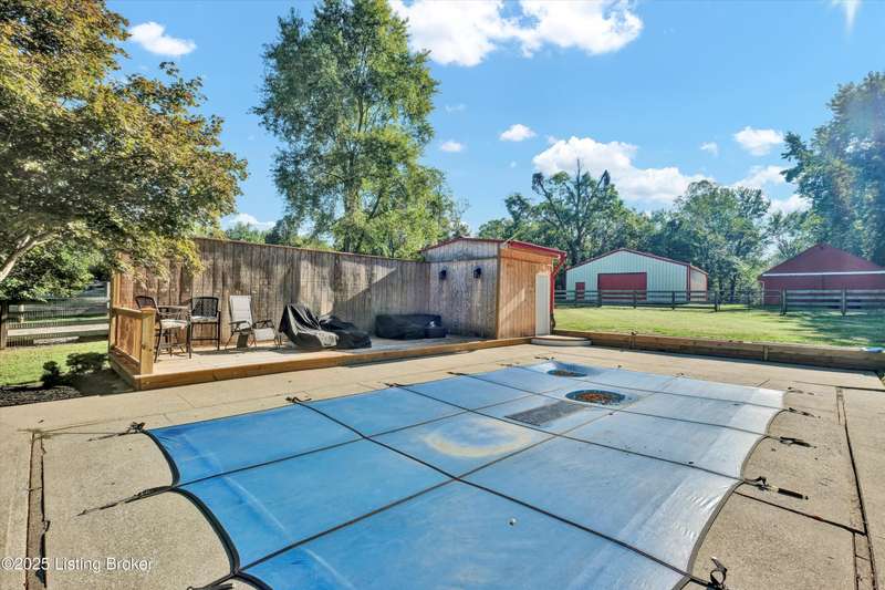 9305 Hi View Ln is a move-in-ready 4 bedroom, 3 bath retreat on nearly 3 acres inside the city limits. A bright sunroom, two fireplaces, and a finished walkout basement create inviting spaces for daily living and entertaining. The interior lives fresh with new luxury vinyl flooring in the sunroom, redesigned primary closets that double storage, updated lighting with 5 CCT adjustable LEDs, fresh paint throughout several rooms, and a new dishwasher, microwave, thermostat, and more. Outside is where this property shines. Cool off in the in-ground pool with a newer liner and pump, expanded deck, pool shed, and dedicated outdoor Wi-Fi. Garden boxes are ready for your summer harvest. The 1,200 sqft barn has a livestock stall and two chicken coops, plus refreshed electrical and paint. A modern 1,600 sqft steel outbuilding offers fully conditioned space with insulation, HVAC, rubber flooring, and an 8 ft ceiling fan. The 16 ft by 10 ft overhead door fits an RV, boat, UTV, or trailer with ease. Everyday convenience meets country feel. You are about 10 minutes to Iroquois Park, Gene Snyder, Watterson Expressway, Mike Linnig's, and Colonial Gardens.