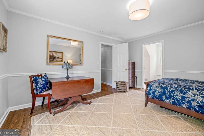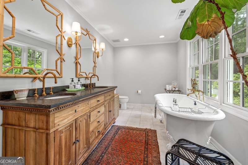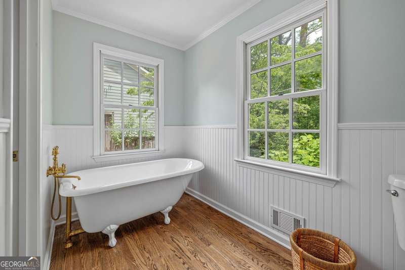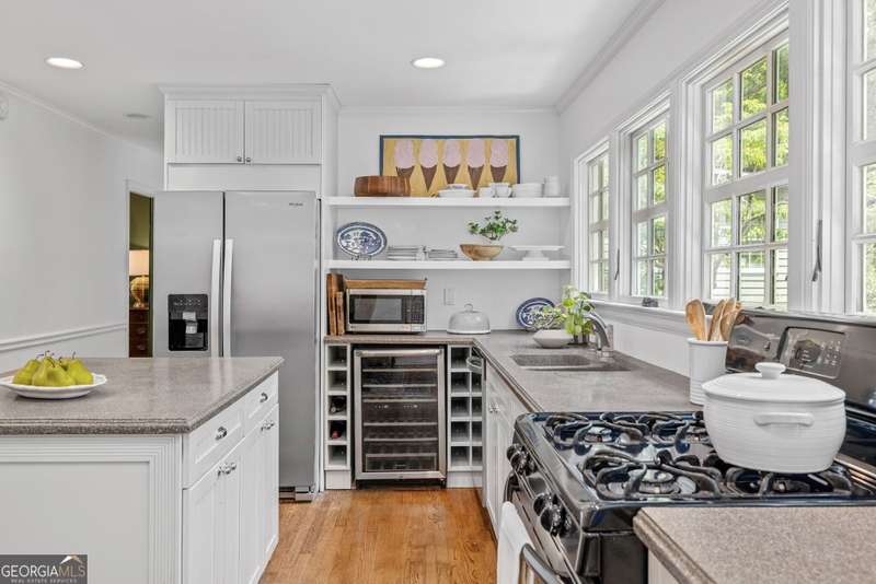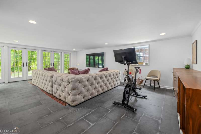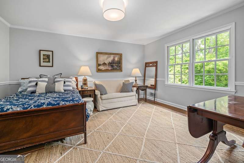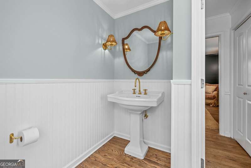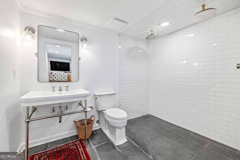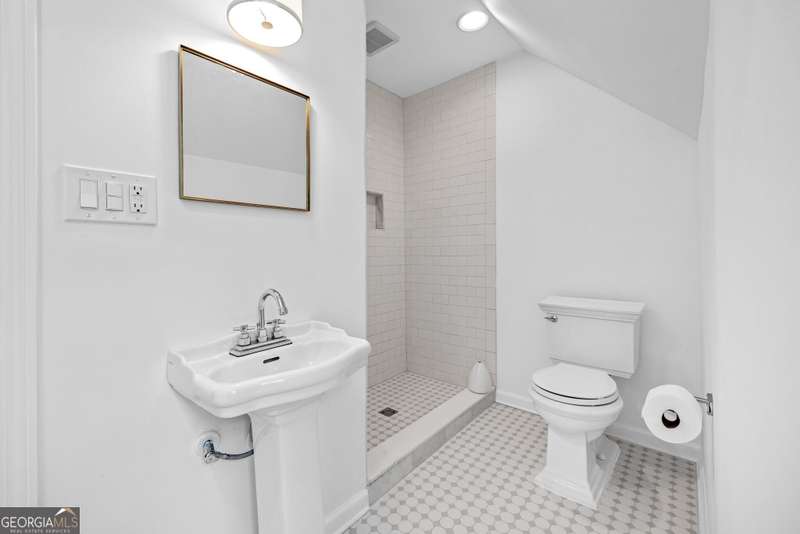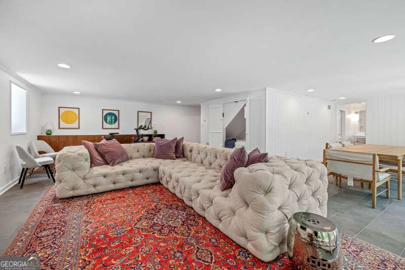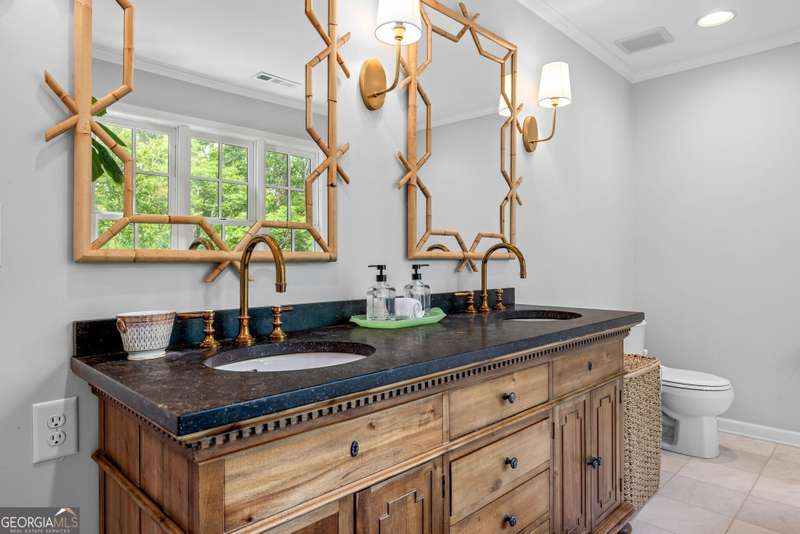 Welcome to this beautifully renovated Lake Lanier home, a rare combination of timeless charm and upscale designer finishes, complete with a single-slip deep water dock conveniently located near South Lake Lanier attractions & dining. From the moment you approach the home, Serena and Lily front porch lighting greets you and sets a precedent for the designer lighting package found throughout. Step inside to discover the character and upgrades around every corner, off the entry way find the dining room and continue to the kitchen that is open to the sitting room, spacious enough to accommodate a kitchen table and a living room amongst the wall of windows and French doors, flooding the room with natural light. The kitchen offers white cabinetry and floating shelves for convenience and storage, in addition to the pantry. The island is the perfect size for a chef's workspace. The back deck off the kitchen invites you to enjoy the private backyard setting. Additionally on the main level, you will find a bedroom that can serve as a study or media room with built ins and a fireplace, and a full bathroom updated to reflect the character and charm found throughout the home with a claw foot tub and designer lighting. Upstairs has been reimagined and renovated to feature two more bedrooms, each with private en-suites. The master suite to the right of the landing is spacious and features window bench seating. The en-suite is adorned in Restoration Hardware finishes and upgrades, including the clawfoot tub with both tub and shower fixtures and double vanity, framed in with windows overlooking the backyard. The additional upstairs bedroom suite is across the landing and offers size and ample natural light, with an en-suite that has built in storage and shelving, and a custom tiled shower. The terrace level was thoughtfully crafted and renovated with guests and entertaining in mind. Blue stone tile flooring is found throughout the entire level and continues to the back patio for a seamless blend into outdoor living space, highlighted by an expansive wall of four sets of French doors. Versatility and function throughout every inch of the terrace level, find space to accommodate a living room, dining room, and more all while accommodating guest sleeping quarters with a built-in twin-size bunk and a pull-down Queen-size Murphy bed. Pre-wired for Dolby 5.1 surround sound, everything has been considered. The full bathroom showcases a walk-in floor to ceiling tiled shower. The hidden storage closet is craft-fully tucked behind a bookcase. The finishes and craftsmanship go beyond aesthetics, with updated and replaced exterior cypress hardwood siding, insulation, and windows, along with the addition of the metal roof. Outside, the grounds have been masterfully re-landscaped with a stone wall, privacy fencing, pea gravel driveway, irrigation system. Amongst the lush Zeon Zoysia turf, find numerous established blooming plants and blossoms. The footprint allows and has been thought-out for future expansion, with space reserved for a garage or carport and a potential three-story addition. The deep water dock is equipped with electrical and pre-wired for path lighting, in addition to water connection. The single slip with a party deck provides space to dine and entertain while enjoying the view to open water. The cove position is ideal, with deep water and protection from boat traffic, yet close to open water. With Lake Lanier access at your back door, there's no shortage of activities, just a short boat ride to Aqualand Marina/Pigtails Restaurant, and easy access to other marinas, dining, and Lake Lanier Islands/Margaritaville. By car, approximately 3 miles from downtown Flowery Branch with shopping and dining.
