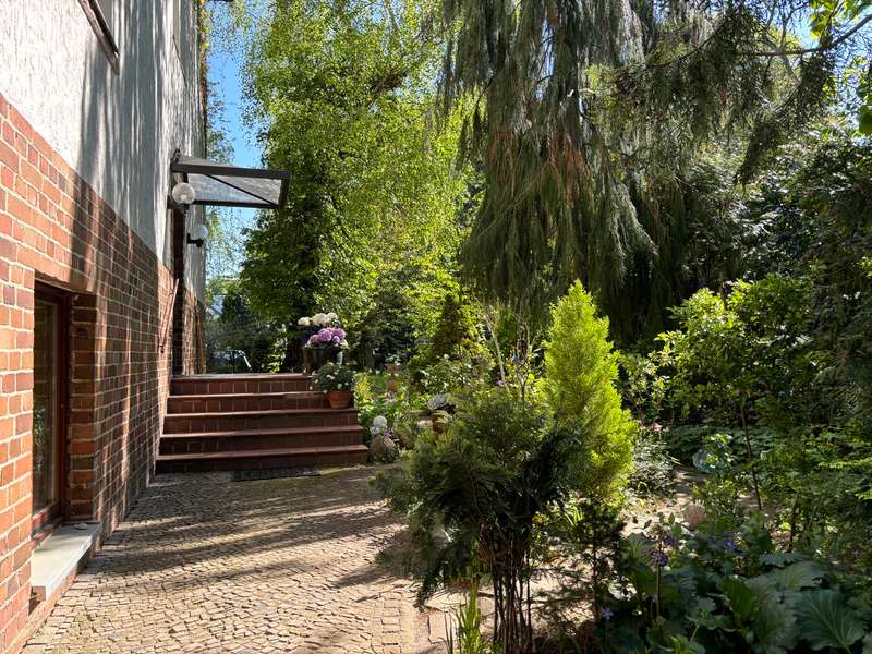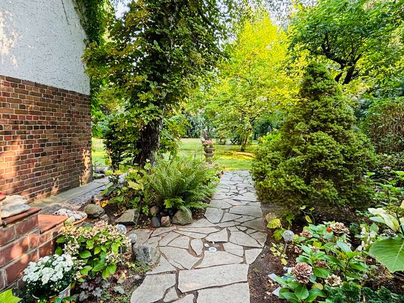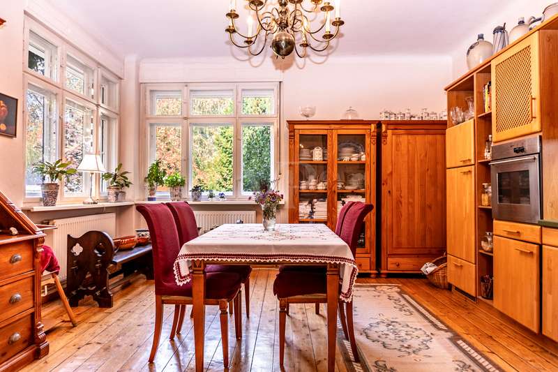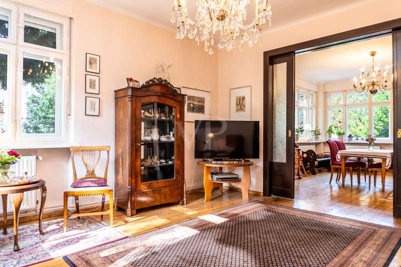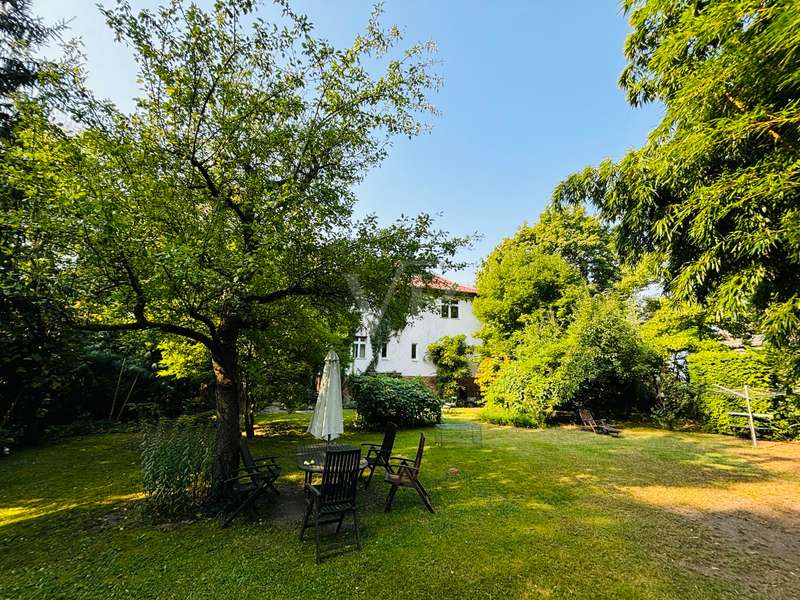 Welcome to your future home! This unique property from the 1930s not only offers a generous living space of approx. 221 m², but also the possibility of dividing the property, so that the rear part of the plot can also be built on. The park-like plot extends over an impressive approx. 1,303 m². The lawn to the rear with a beautifully landscaped garden, accessible via the veranda on the first floor, invites you to relax and offers plenty of space for your leisure activities. This stately detached house with a full basement and villa character impresses with its typical 1930s charm. It has parquet and floorboards as well as a fireplace, which creates a cozy atmosphere in the cooler seasons. All levels are accessed via a spacious entrance with a central staircase. On the first floor is the spacious living area with a historic sliding door leading to the generous dining room with open kitchenette, ideal for convivial evenings with family and friends. A further living area with fireplace and access to the conservatory with a small guest WC round off the space on offer. From the veranda you have direct access to the beautiful garden. The upper floor offers a large bedroom, two further living rooms and a bathroom. The balcony is accessible from both the bedroom and the living rooms and offers a wonderful view of the property. The unfinished top floor represents a reserve of living space and can be designed and used as you wish. The room layout in the basement includes a complete granny apartment, a hallway, a laundry room with a cellar room, a sauna with shower and an additional WC. The granny apartment consists of a bathroom, a kitchen with dining area and a bedroom/living area. Extensive renovations were carried out in 1998, including the installation of the basement apartment, the opening up of the staircase area and the installation of a sauna. This charming property currently offers six living spaces with a living area of approx. 221 m² and a usable area of approx. 120 m². It impresses with its spacious layout and versatile usage options. Experience for yourself the charm and possibilities offered by this unique property. We look forward to introducing you to your new home!