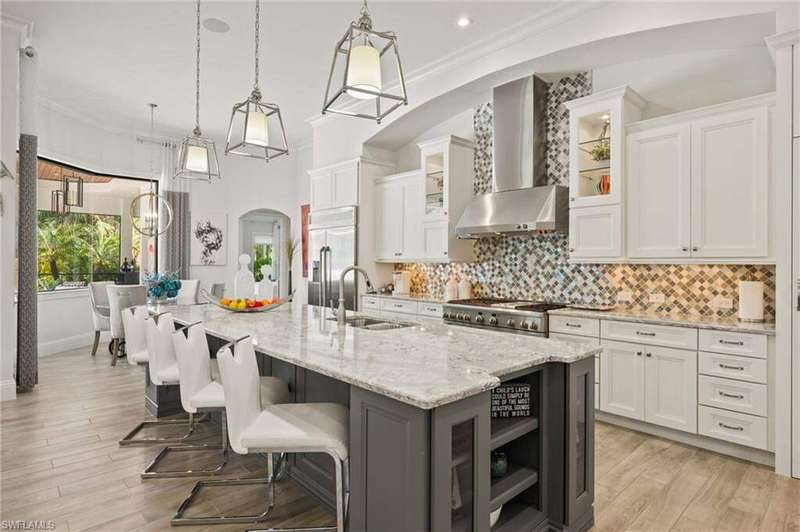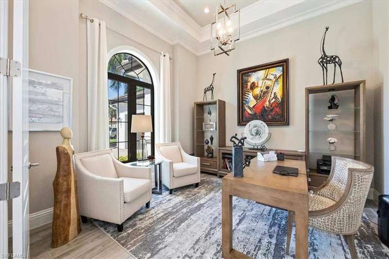 Behold this graciously appointed home sitting on the 9th tee of the preserve course. When you step thorough the double glass front door to the stunning foyer, you will immediately be immersed in luxury. The soaring ceilings greet you and offer the spectacular opening to the great room flanked by the formal dining room and den and leading your eyes to the luxurious lanai. A cozy fireplace and large kitchen island anchor the great room for fabulous entertaining and the additional flex room can be used for a multitude of purposes and opens also to the lanai with pocketing sliding doors. The kitchen is a delightful space to use your imagination and create culinary delights, double ovens, wall oven, gas cooktop, walk in pantry and all the bells and whistles you can ask for to release your inner chef! Immerse yourself in the gorgeous primary suite, generous and able to accommodate a seating area as well as your king-sized furniture and a private French door to the lanai for quiet respite. After a well enjoyed day in SWFL you can pamper yourself in the primary spa inspired bath with large shower, soaking tub and double vanities. 2 additional bedrooms and baths are simply divine for family and guests. The exceptional lanai features a wood ceilinged gathering space including a full outdoor kitchen, seating area with fireplace and dining space and all overlooking the superb inground heated pool/spa and water feature wall. Updates include HVAC in 2024/25. Offering a transferrable House Membership.