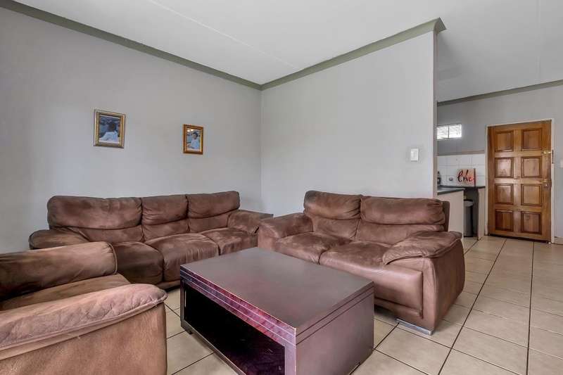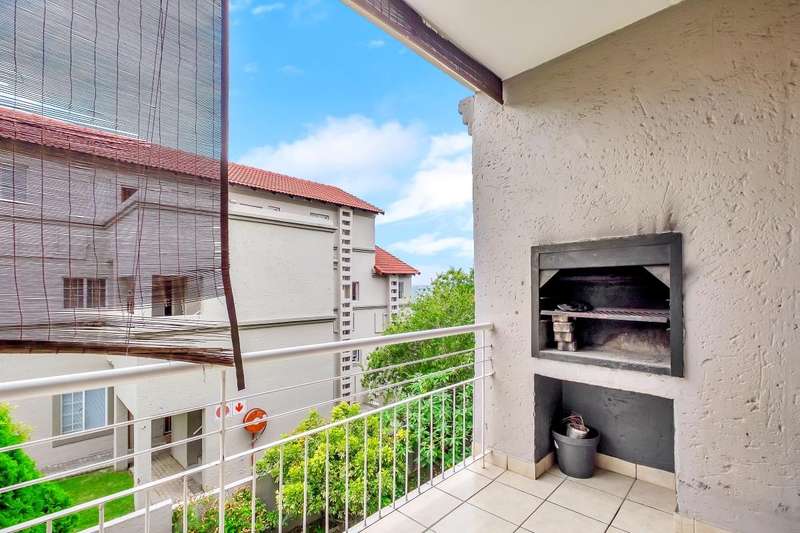 On offer is 2 carpeted bedrooms, 2 bathrooms, the main being ensuite. Kitchen with space for a top loading washing machine and fridge, oven and ample cupboard space. The lounge opens onto a covered balcony with braai area, perfect to enjoy your sundowners whilst taking in the fresh air and listening to the birds. The unit also has a single garage, truly a rare find.